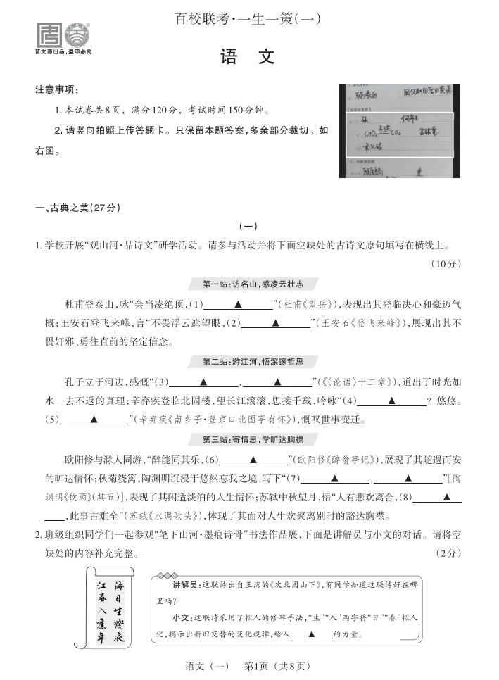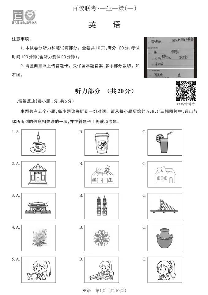 免费下载|山西专版2026百校联考·一生一策(语文、理综、英语)完整版