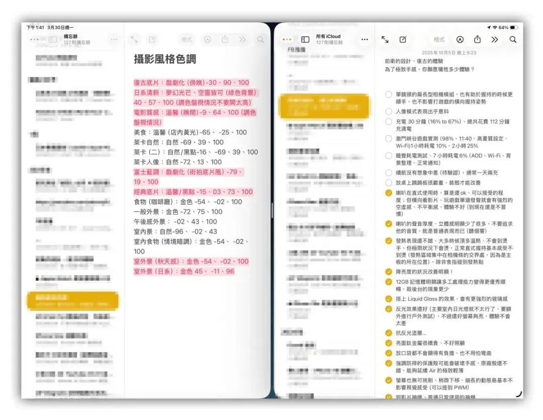 备忘录开两个视窗,一个放原始资料、一个用来整理重点,可以直接拖拉文字整理,效率比单一画面高很多。