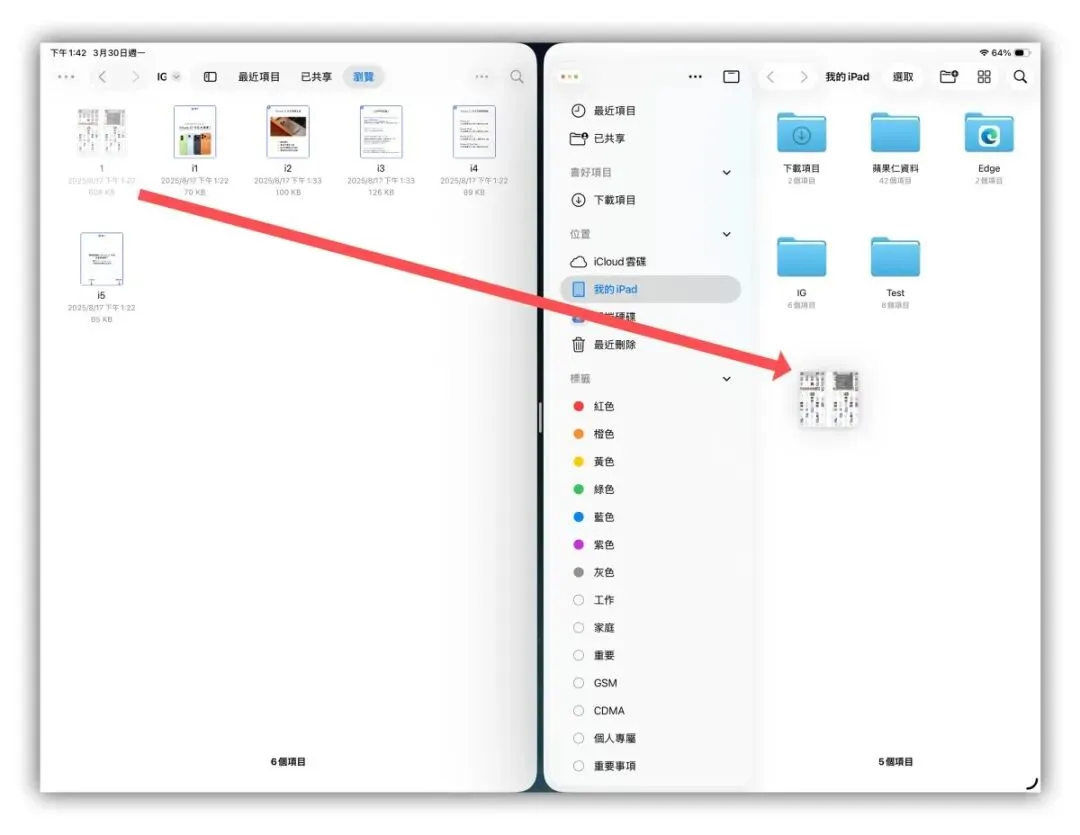 使用档案App,将两个资料夹以多视窗的形式开启,在整理资料、分类文件时会更直觉。
