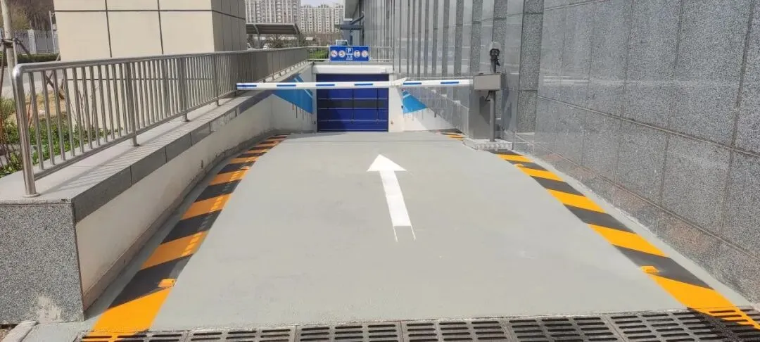 此处为地库进口。请所有车辆停入地库。该入口设置了进口指示牌,防滑坡道,交通道闸以及卷帘门,有权限进入地库的教职工驾车下坡请注意减速,通过道闸后卷帘门会自动升起。东西区车库权限互通,已录入系统的车辆无需重新录入。