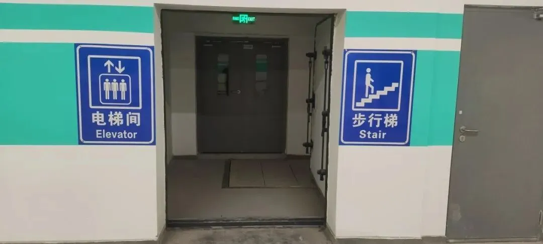 此处为电梯、步行梯指引牌,可乘坐电梯,走步行梯上下楼。