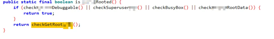 Java.perform(function () {var cls = Java.use("com.xxx.RootCheck");cls.isRooted.implementation = function () {return false;};});