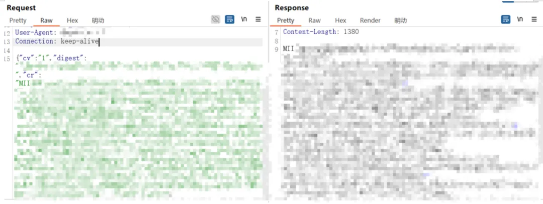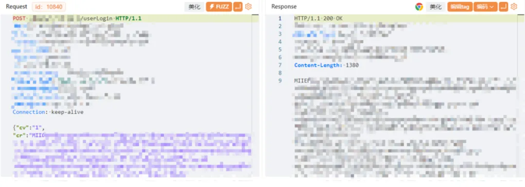 这就使得APP安全测试中遇到了一个非常现实的问题——Burp抓到的全部都是密文,请求和响应内容完全不可读,抓包几乎失去了分析意义。