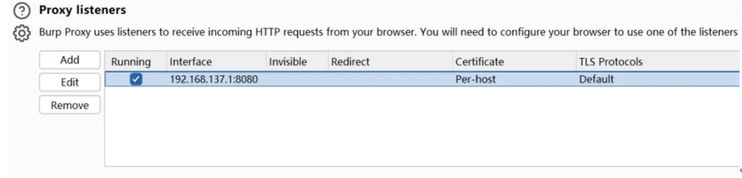 接着,将Burp的监听主机地址和端口,设置为手机中配置的代理服务器地址和端口,使手机流量能够通过代理转发到Burp: