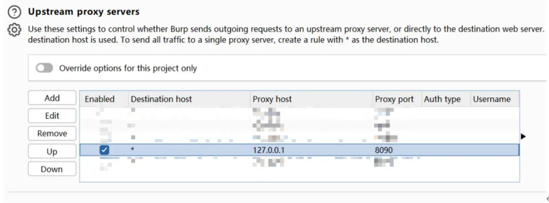 还需要将Burp的上游代理设置为MITMproxy所监听的主机和端口:
