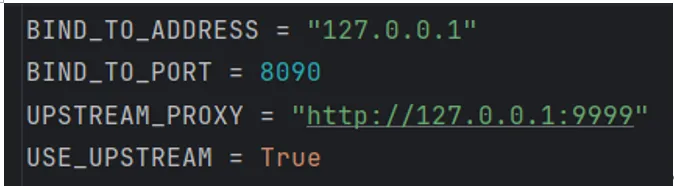 class MyAddon1:def __init__(self):self.xxx = None# ----------------------------# Request# ----------------------------def request(self, flow: http.HTTPFlow):if not _is_target(flow):returnbody = _get_text_safe(flow.request)if not body:returnif not _is_json(body):returnprint(f"{MITM_FLAG_REQUEST_URL}")print(flow.request.pretty_url)encrypted = CryptoBridge.encrypt(body)if encrypted:flow.request.set_text(encrypted)# ----------------------------# Response# ----------------------------def response(self, flow: http.HTTPFlow):if not _is_target(flow):returnbody = _get_text_safe(flow.response)if not body:returnprint(f"{MITM_FLAG_RESPONSE_URL}")print(flow.request.pretty_url)decrypted = CryptoBridge.decrypt(body)if decrypted:flow.response.set_text(decrypted)async def run_upstream():mode = f"upstream:{UPSTREAM_PROXY}"options_options = options.Options(listen_host=BIND_TO_ADDRESS, listen_port=BIND_TO_PORT, mode=mode,ssl_insecure=True)m = DumpMaster(options_options, with_dumper=False, with_termlog=False)m.addons.add(MyAddon1())await m.run()if __name__ == '__main__':asyncio.run(run_upstream())