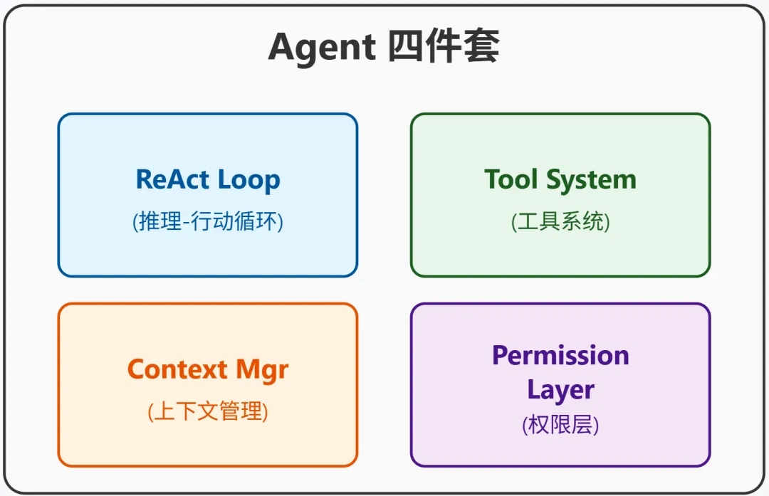 ReAct Loop + Tool System + Context Manager + Permission Layer——这就是 2026 年自主 Agent 的标准答案。