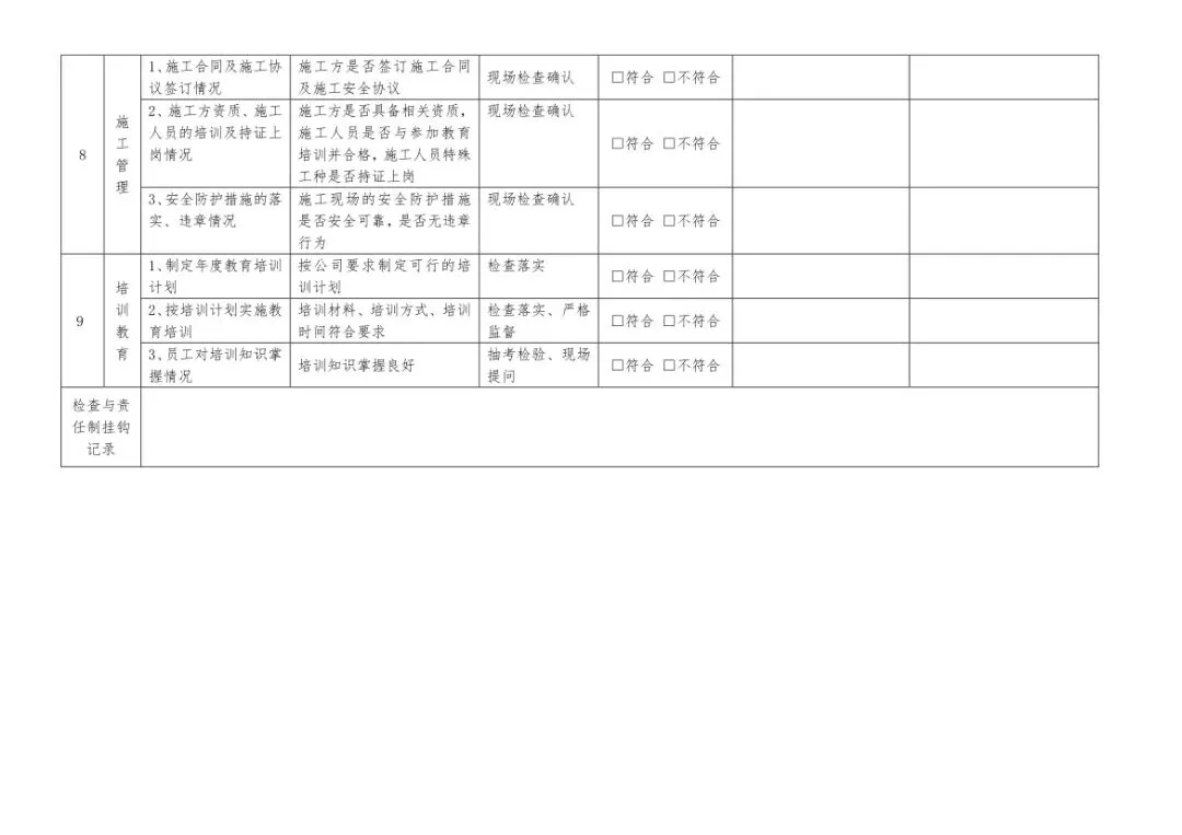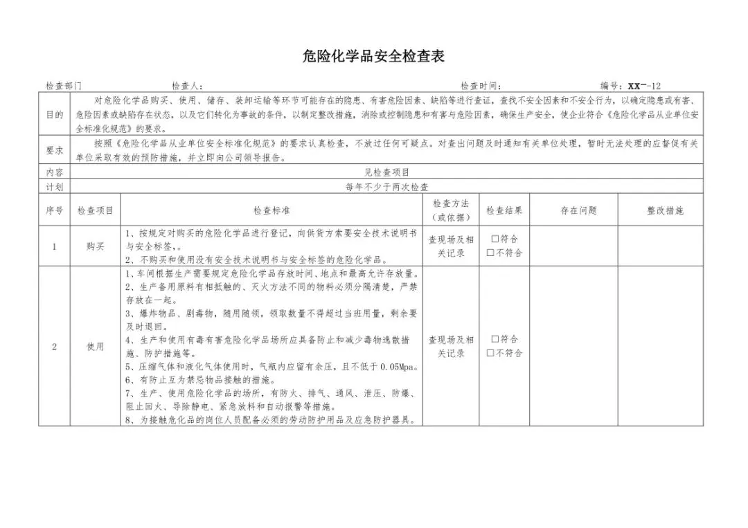 表格内容严格遵循安全生产相关规范,检查标准清晰明确,新手安全管理员能快速上手,老员工也能借助表格查漏补缺,避免因经验疏漏导致的隐患遗漏。无需花费时间自行编制,省去资料搜集、内容梳理的过程,下载后可直接打印,根据企业实际情况稍作调整就能使用,大幅节省安全管理的时间和精力成本。