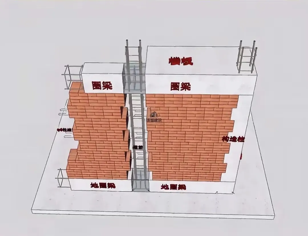 “先砌墙,后做柱”,墙体为主承重,构造柱、圈梁辅助加固,造价低、施工简单,适合3层内普通自建房。缺点是抗震一般、墙体不可随意拆除;地震高发区需做好加固措施。