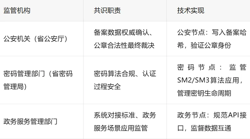 该架构既符合山西省现有”公安备案+密码管理+政务服务”的三元监管体系,又通过区块链技术实现了备案公章的实时可信认证,解决了传统电子印章”制发即固化、状态难同步”的痛点。