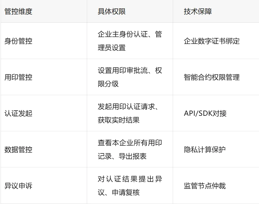 参与主体:公章备案企业(用章单位),作为认证管控主体(自主管控)