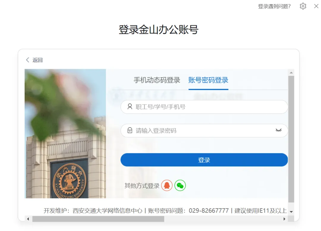 1.电脑端选择“sso”登录方式,手机端选择“第三方企业登录”方式,输入学校代码【xjtu】;