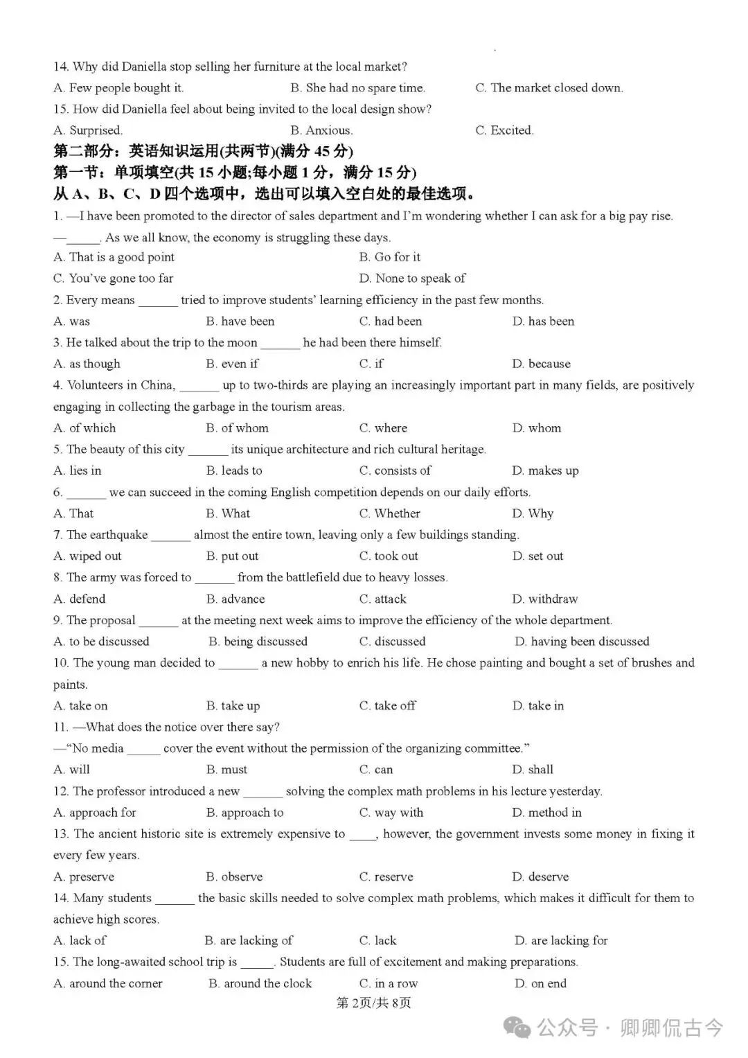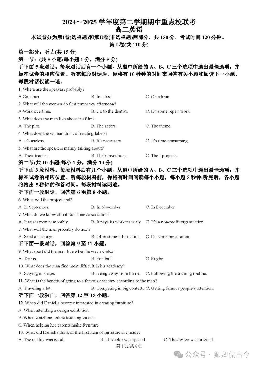 【可下载】天津市五区县重点校联考2024-2025学年高二下学期4月期中英语试题(附解析) 点击上方“蓝字”免费关注! 本套试卷+答案解析下载入口 关注“卿卿侃古今”公众号 在聊天对话框内发送关键词 585 相关链接: 2007-2025年天津市高考英语真题汇总(持续更新中~) 2011-2023年天津高考英语听力真题在线测试 【考前热身】天津高考英语听力真题 【高考英语听力在线测试】高考听力机考模拟试题大全(持续更新中) 【可下载】2025-2026年高中英语试题汇总(附解析)【持续更新中】 【汇总】高中英语月考和期中期末试题(持续更新中~) 【题库】高一英语试题汇编(持续更新中~) 【题库】高二英语试题汇编(持续更新中~) 【题库】高三英语试题汇编(持续更新中~) 【可下载】高三英语上学期期末试题16套(附解析) 【可下载】高二英语上学期期末试题10套(附解析) 【可下载】高一英语上学期期末试题汇9套(附解析) 【可下载】2025-2026学年度高一高二高三开学考试模拟试卷(天津专用)(附解析) 新外研版高中英语高清电子课本、课文原文和译文、单元同步复习资料和试题【持续更新中】 【目录1】高中英语阅读理解限时训练大全(持续更新中~) 【目录2】高中英语完形填空限时训练大全(持续更新中~) 【目录3】高中英语书面表达大全(持续更新中~) 【目录4】高中英语听力训练大全(持续更新中~) 【目录5】高中英语单选题大全(持续更新中~) 【目录6】高中英语语法题大全(持续更新中~) 【目录7】高中英语阅读表达题大全(持续更新中~) 【目录8】科普知识汇总 【目录9】中高考学法知识汇总 【目录10】高考英语真题+名校模拟真题+月考和期中期末试题(持续更新中~) 【目录11】暑期高考英语备考资料大全持续更新中~【汇总】中高考志愿填报资料大全 【汇总】高中英语月考和期中期末试题(持续更新中~) 【汇总】2025届高三英语一模试题(附解析) 【汇总】2024届高三英语一模二模三模试题(附解析) 【汇总】2024届高考英语押题卷(附解析) 【汇总】2025届高三英语周考综合练(附解析) 【题库】高三英语限时训练(持续更新中~) 【模拟】2025届高三英语听力机考模拟试题在线测试 【高考词汇】(新)外研版高中英语全七册词汇表(附音频) 【中考词汇】初中英语外研版必备单词表(完整版),可打印 建议收藏保存 点击阅读原文查更多