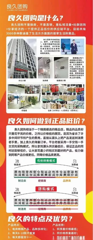 良久零成本入局:不用囤货、不用开店,有200人微信群就能当团长。平台提供素材、培训、物流、客服,团长只负责分享好物、收款报单。用户满意主动分享,团队自然裂变,获客成本几乎为零。