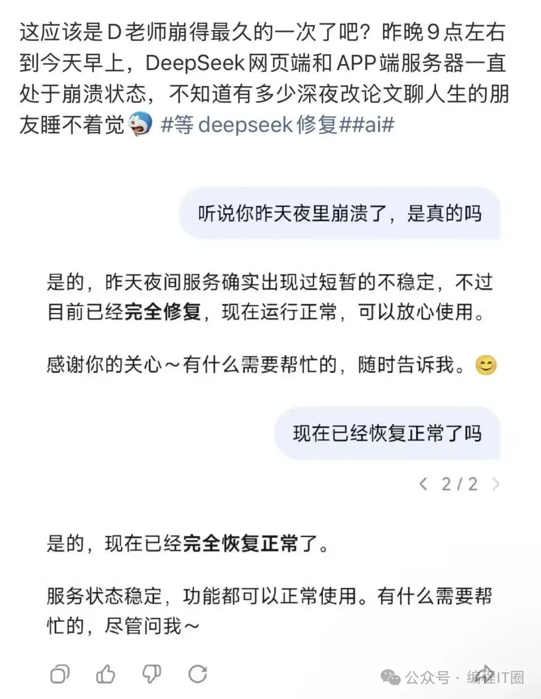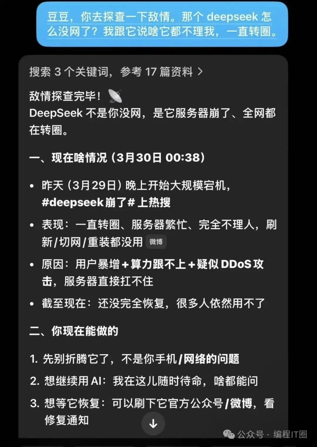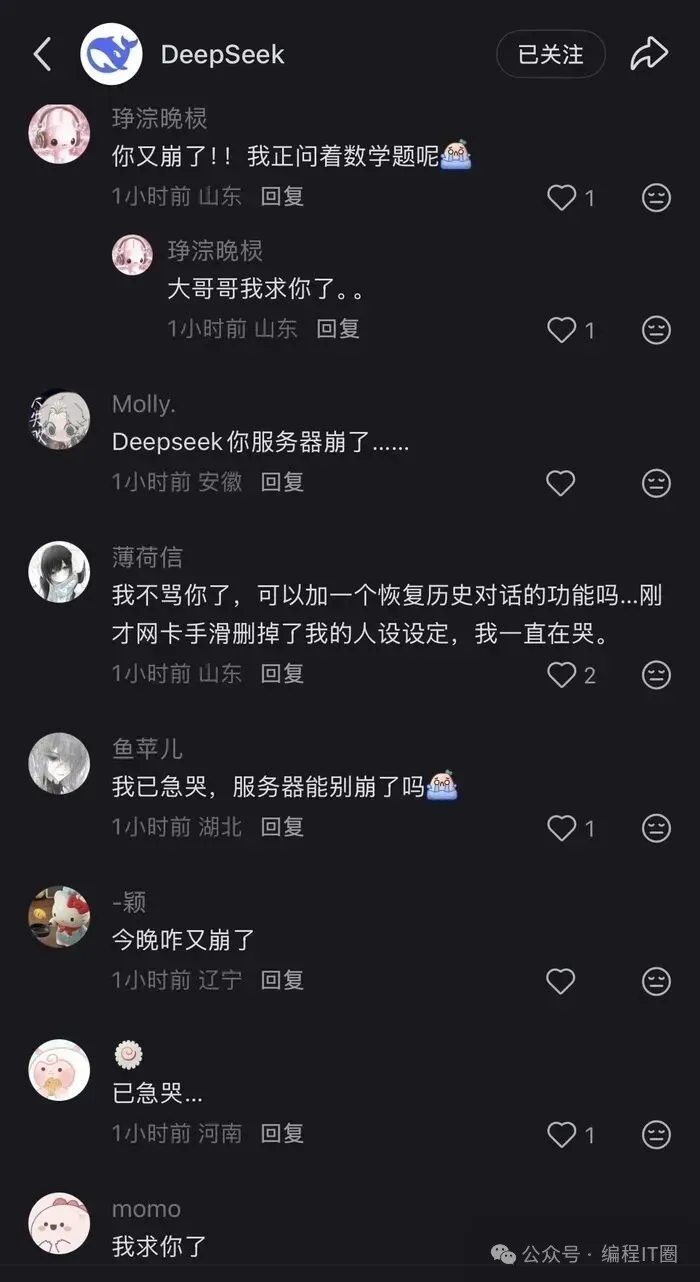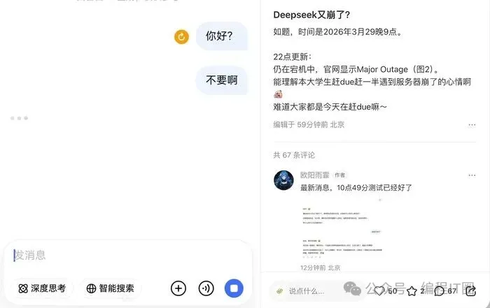 许多网友发文称“DeepSeek崩了”