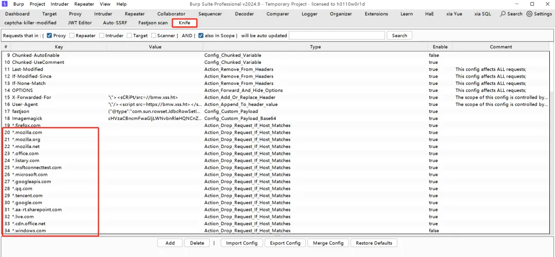 下面填写不是目标资产的域名,后面遇到bp直接drop(当然你可以选择)