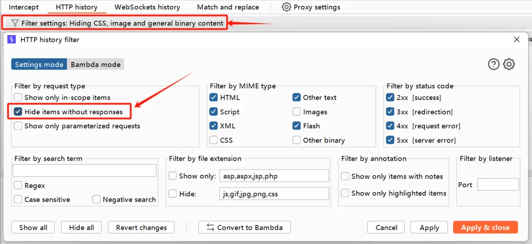 然后对history进行这样,意思就是隐藏dorp的包,就看不到qq.com,cdn.office这些垃圾数据包了。