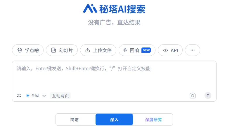 2. 秘塔 AI 搜索 —— 干净无广告备课素材库