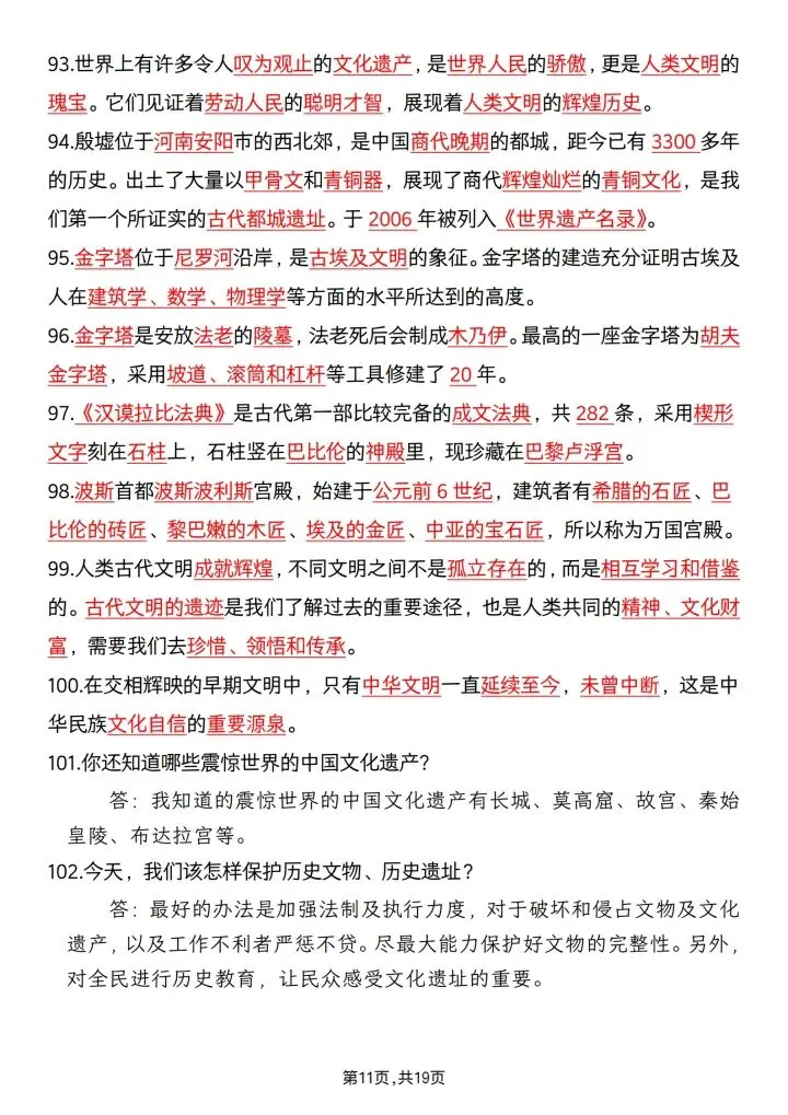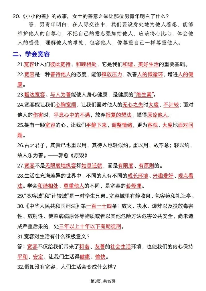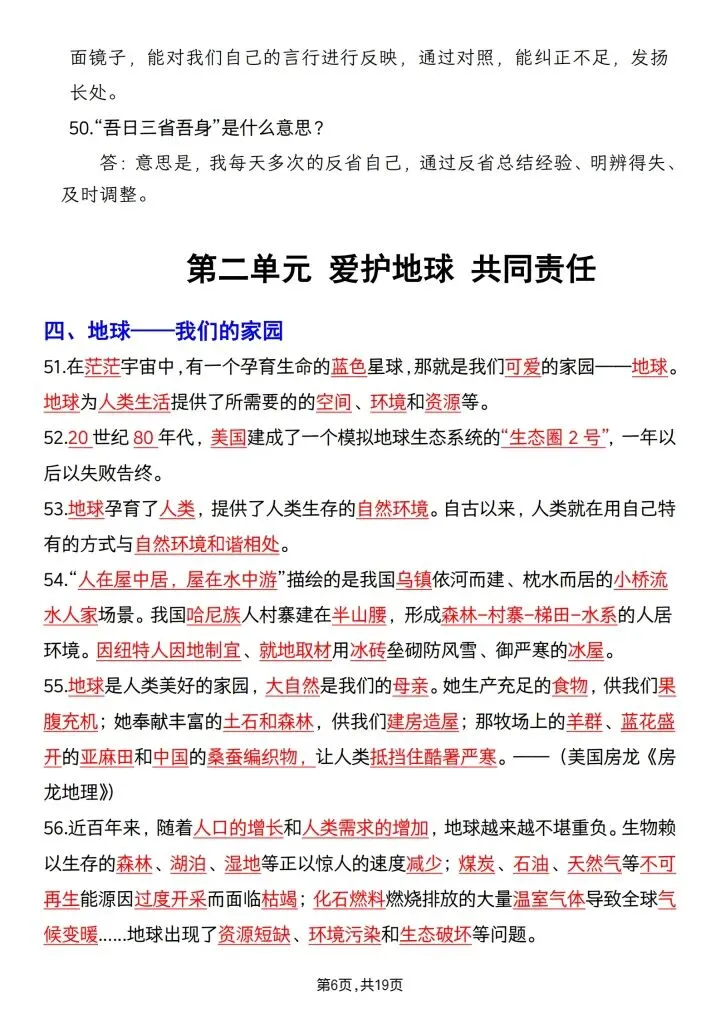 六年级(下)道法必背重点梳理完整版可下载打印