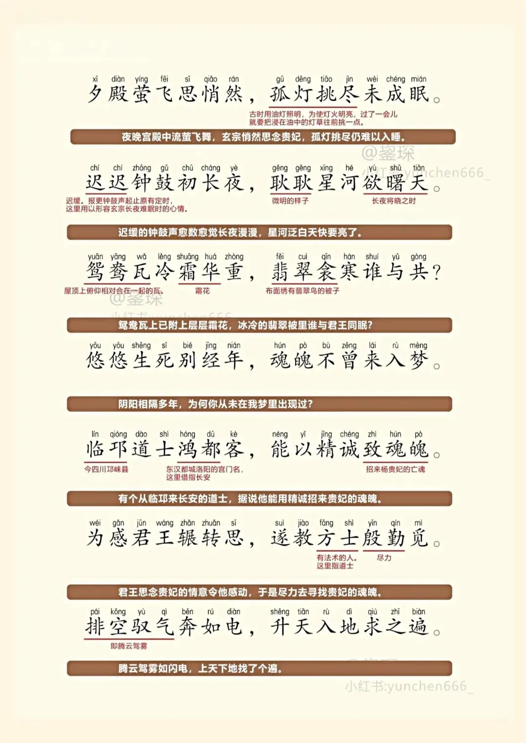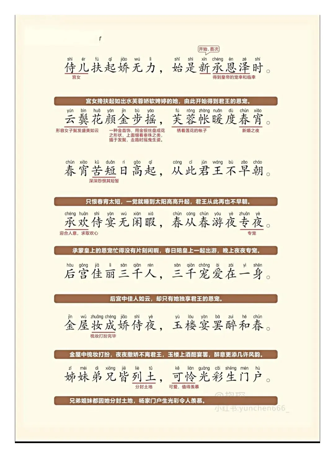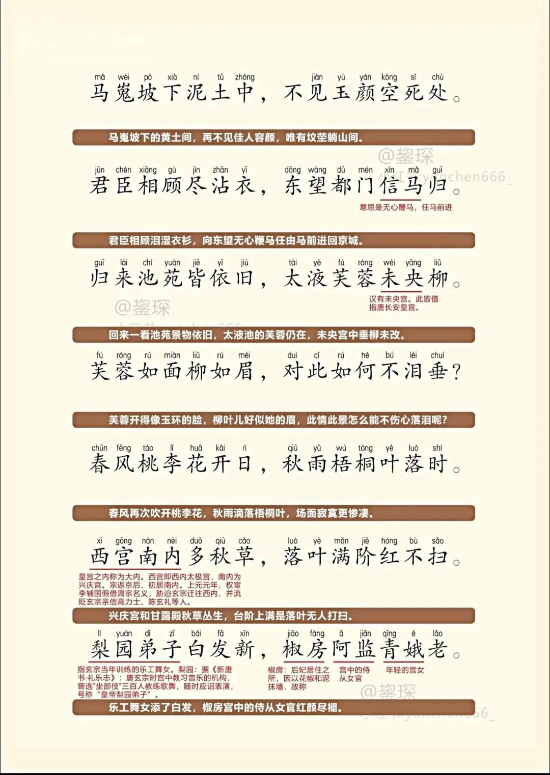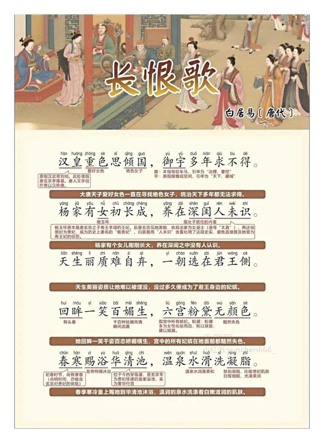 《长恨歌》原文带拼音解释可打印及读书笔记