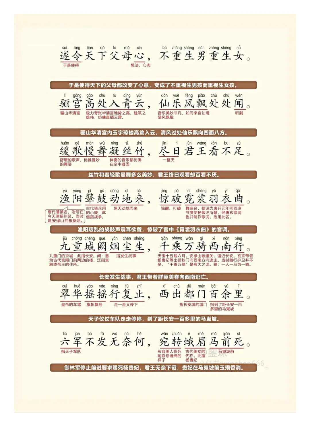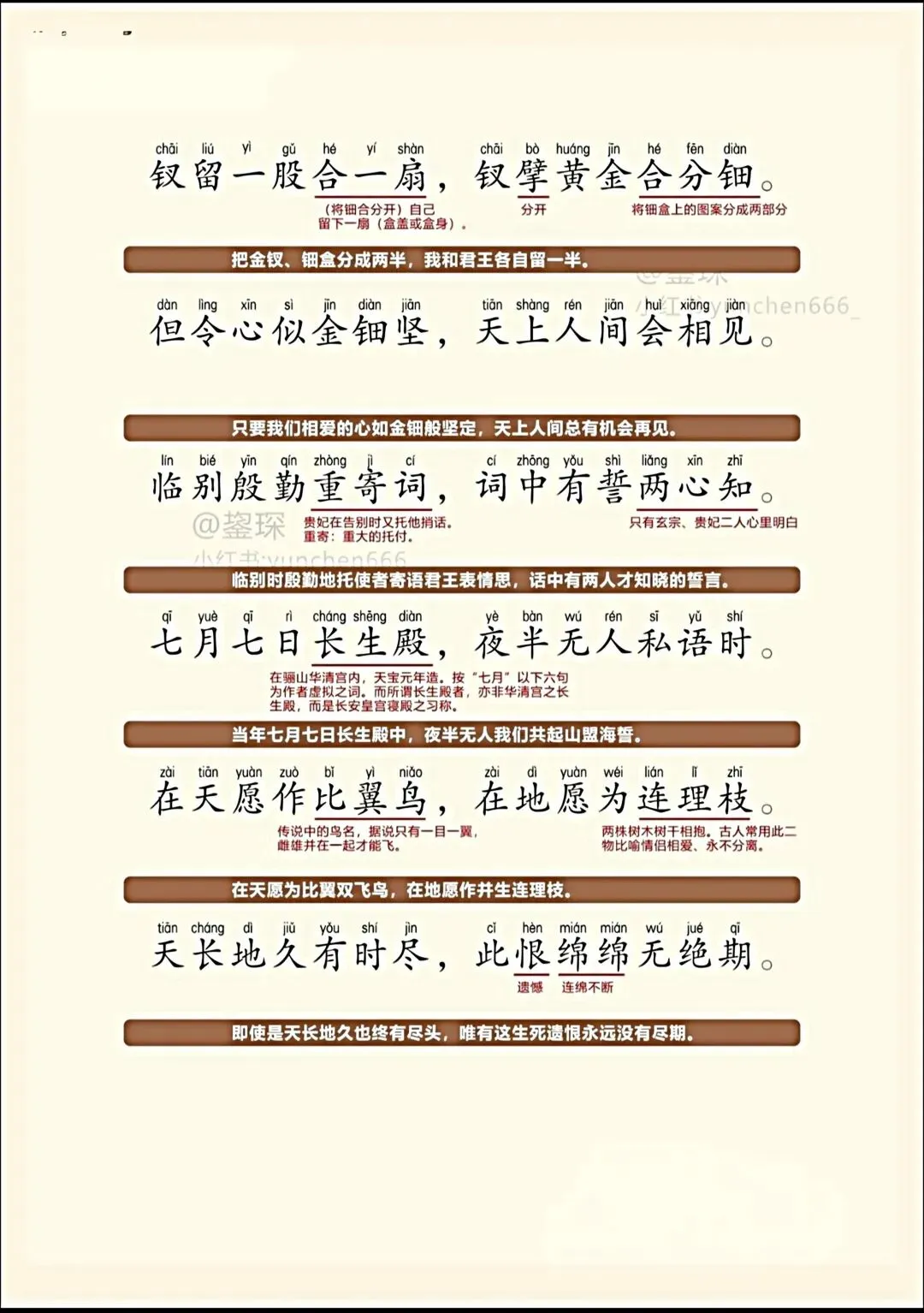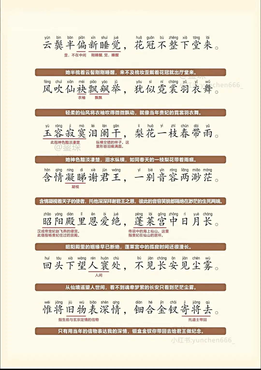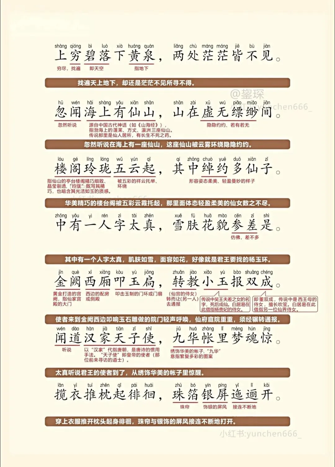 《长恨歌》原文带拼音解释可打印及读书笔记