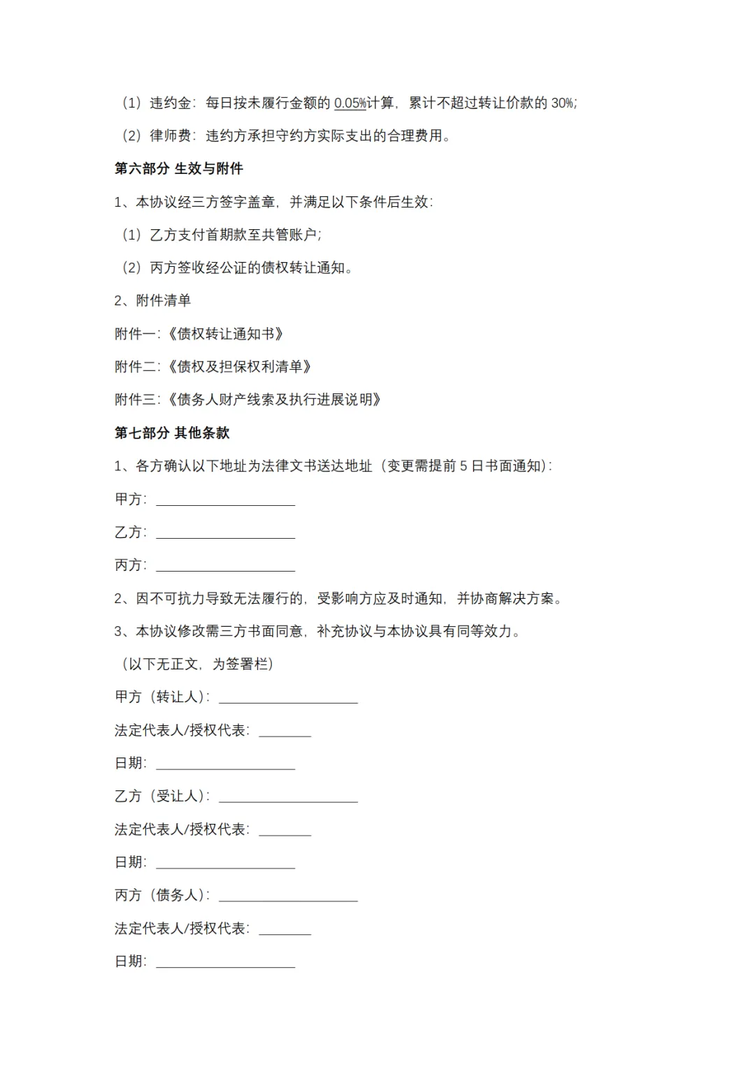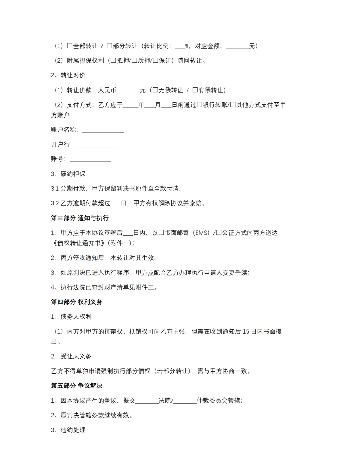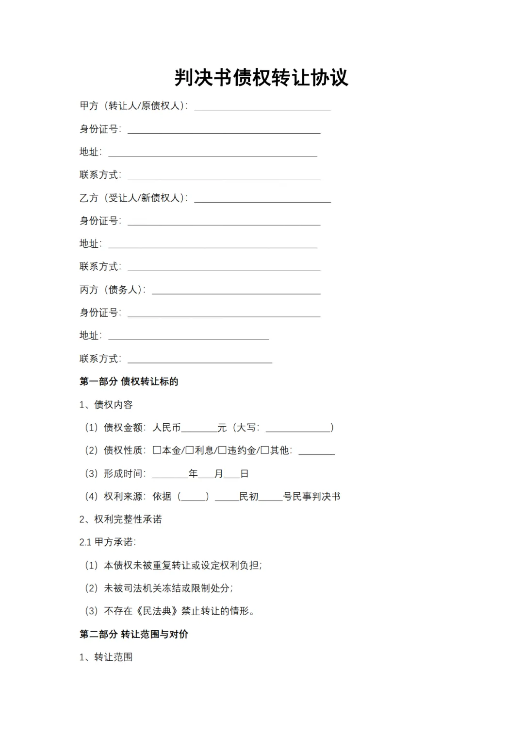 判决书债权转让协议模板,WORD文档电子版,可免费下载打印