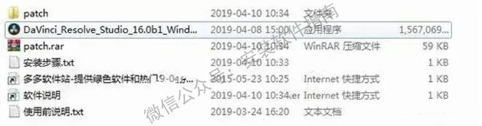 1.下载并解压安装包,得到davinci resolve 16原程序和破解补丁。