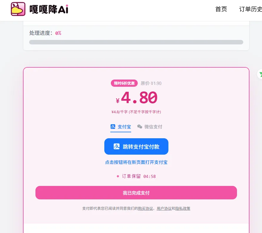每次只能使用2000字,超过字数后系统会提示要求付费,这个时候不要慌。
