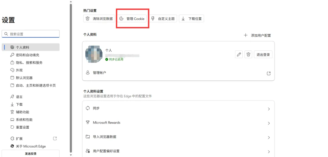 找到管理cookie。