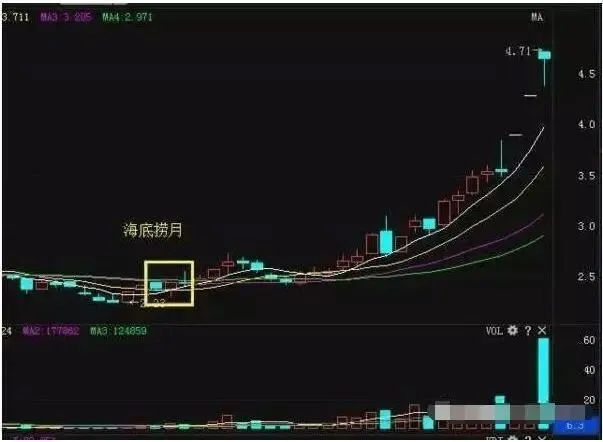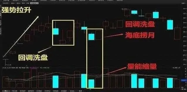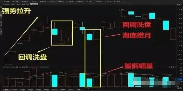 海底捞月:股价大幅低开,收盘却大幅走高,先是深入海底,然后又大幅上涨,股价的波段如此之大,其实就是为了洗盘,而洗盘,就是为了拉升。“海底捞月”也是主力常常利用利空消息来洗盘的手段,那么可在当日收盘前可介入,约低开,拉升的高,那么短线成功率约高。