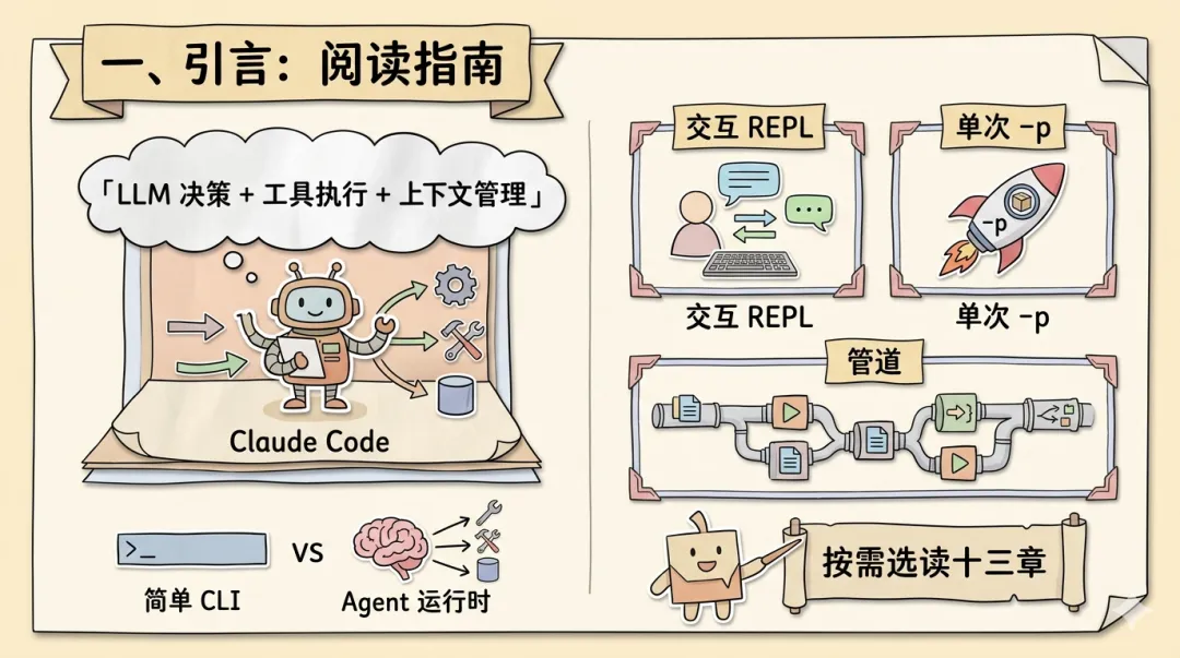 阅读指南:本文共十三个章节,建议按需选读。第二章「架构全景」建立全局心智模型,建议首先阅读。第三至九章分别深入各子系统,适合对特定模块感兴趣的读者。第十、十一章覆盖安全与性能两个横切关注点(cross-cutting concerns),贯穿所有子系统。第十二章提炼八条设计原则,可快速浏览提取要点。每个章节末尾的「AI Agent 最佳实践」小节可独立抽取,作为 Agent 系统设计的 checklist 使用。