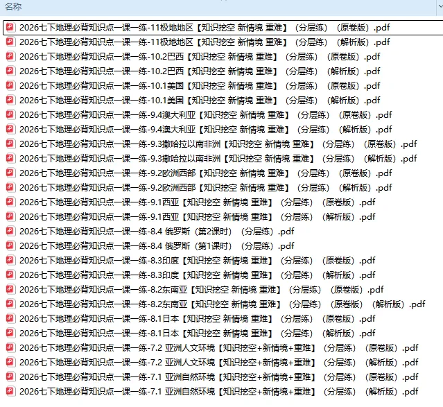 领取电子版资料也可以点下方阅读原文2026版初中7年级下地理《必背知识点一课一练》小四门(知识挖空同步练习)含答案,(无水印)可免费下载打印