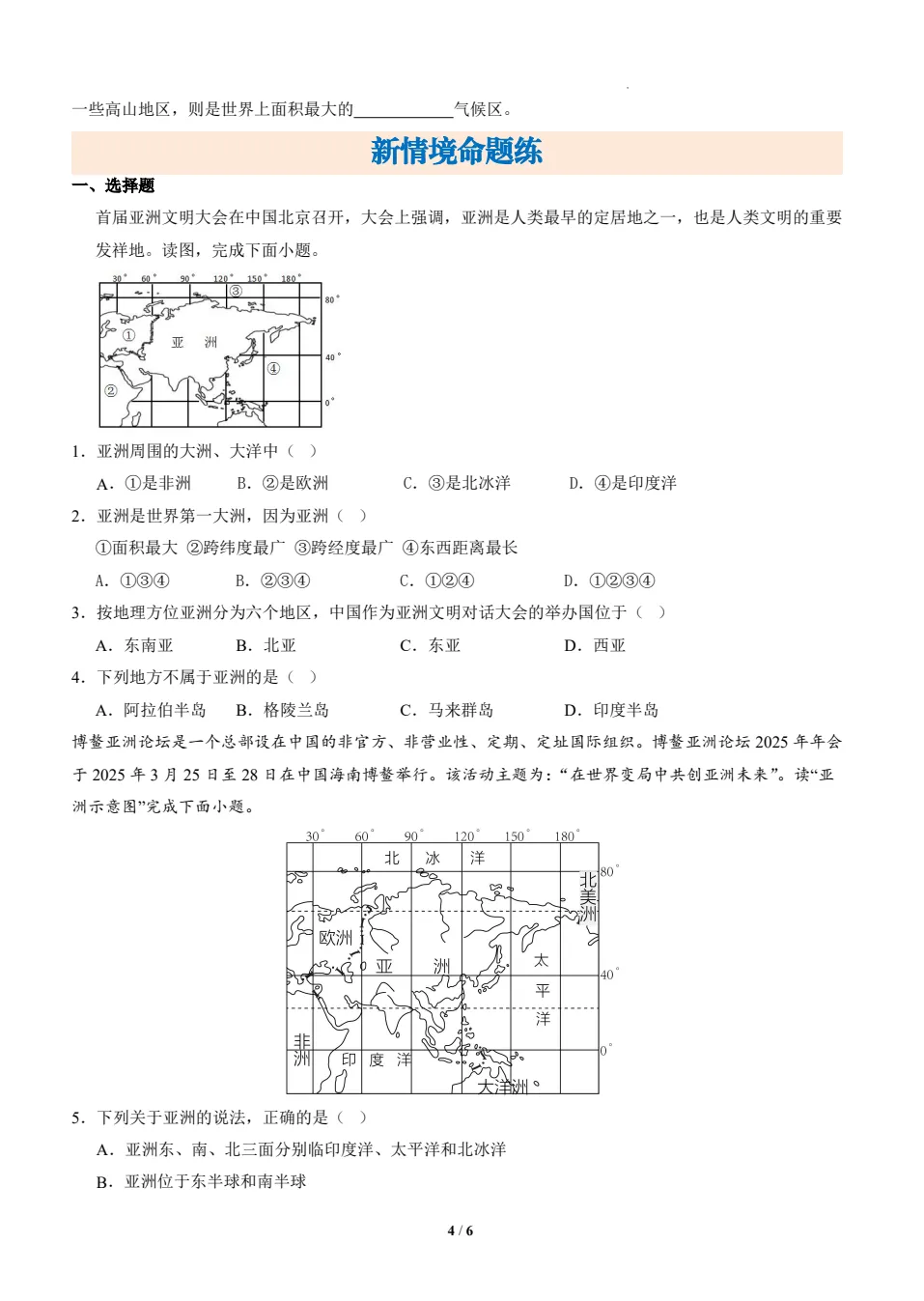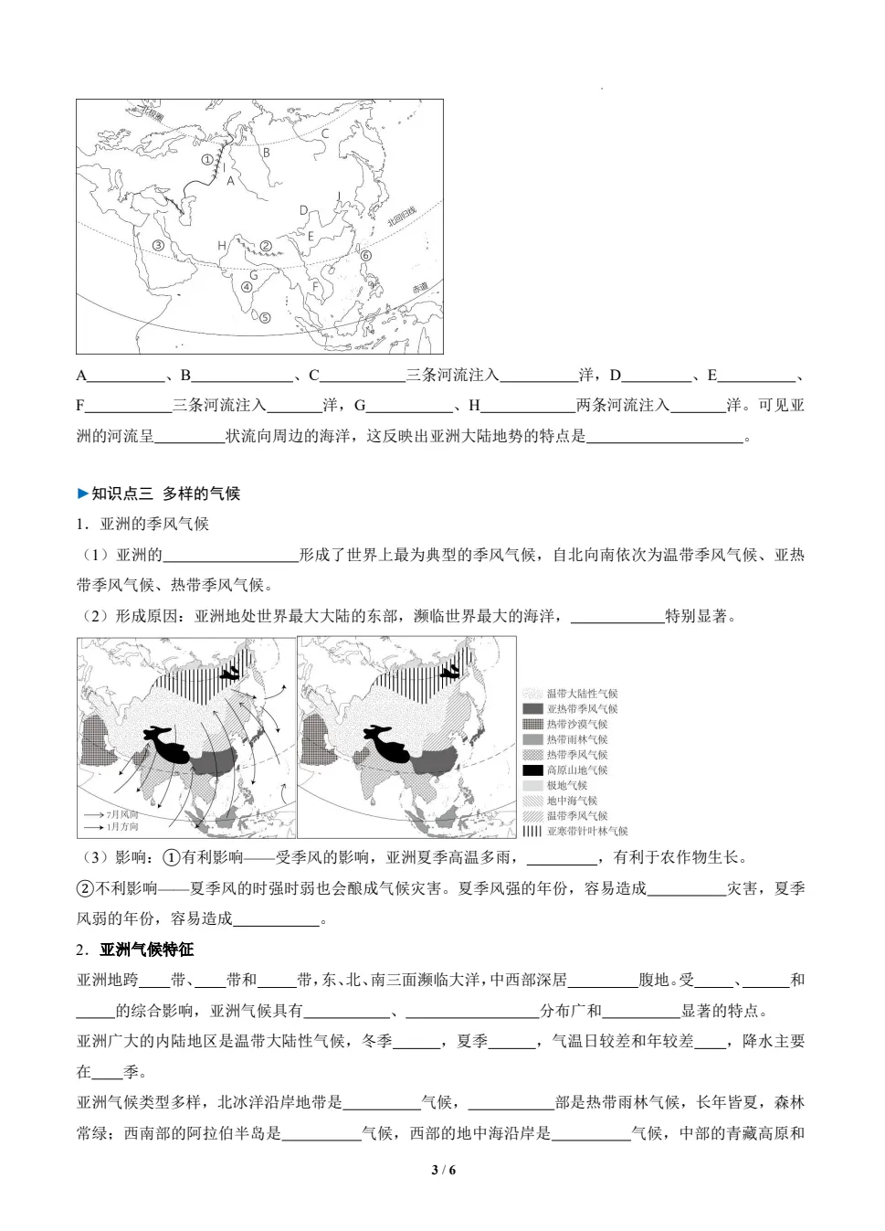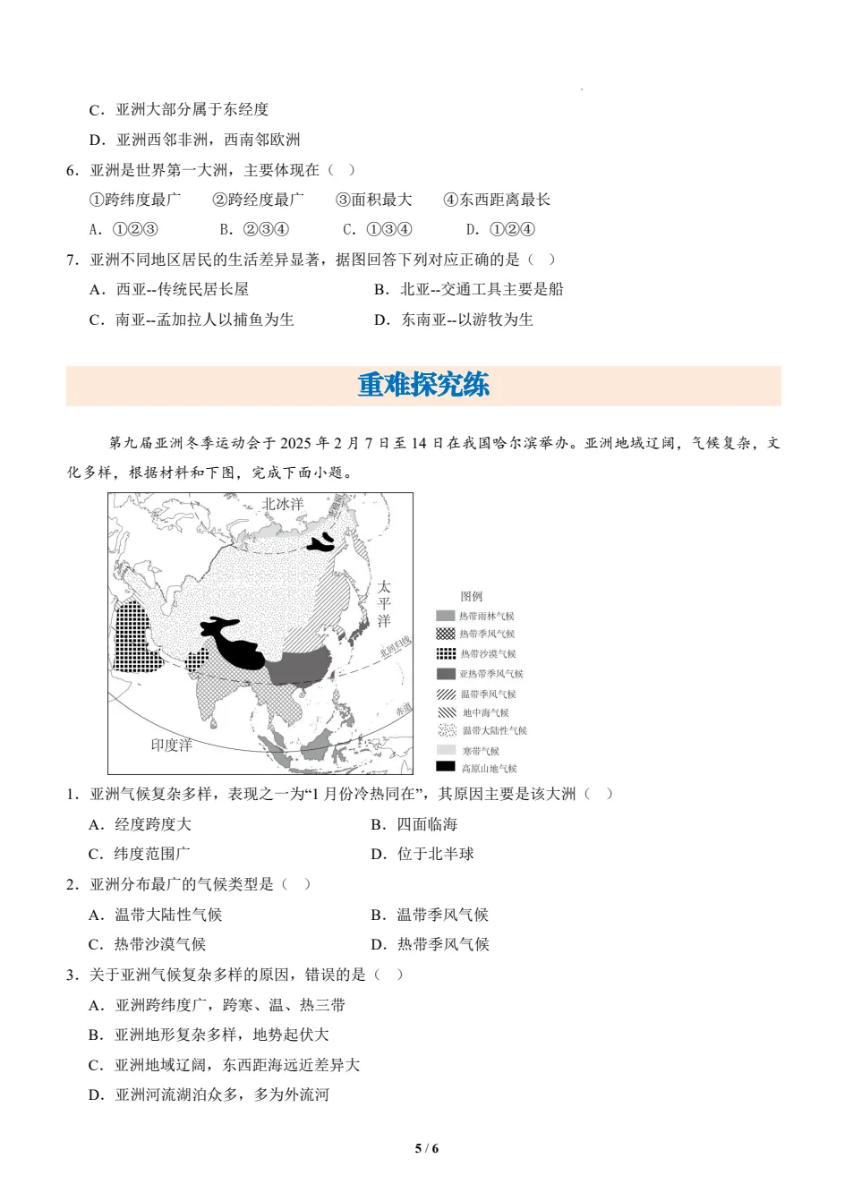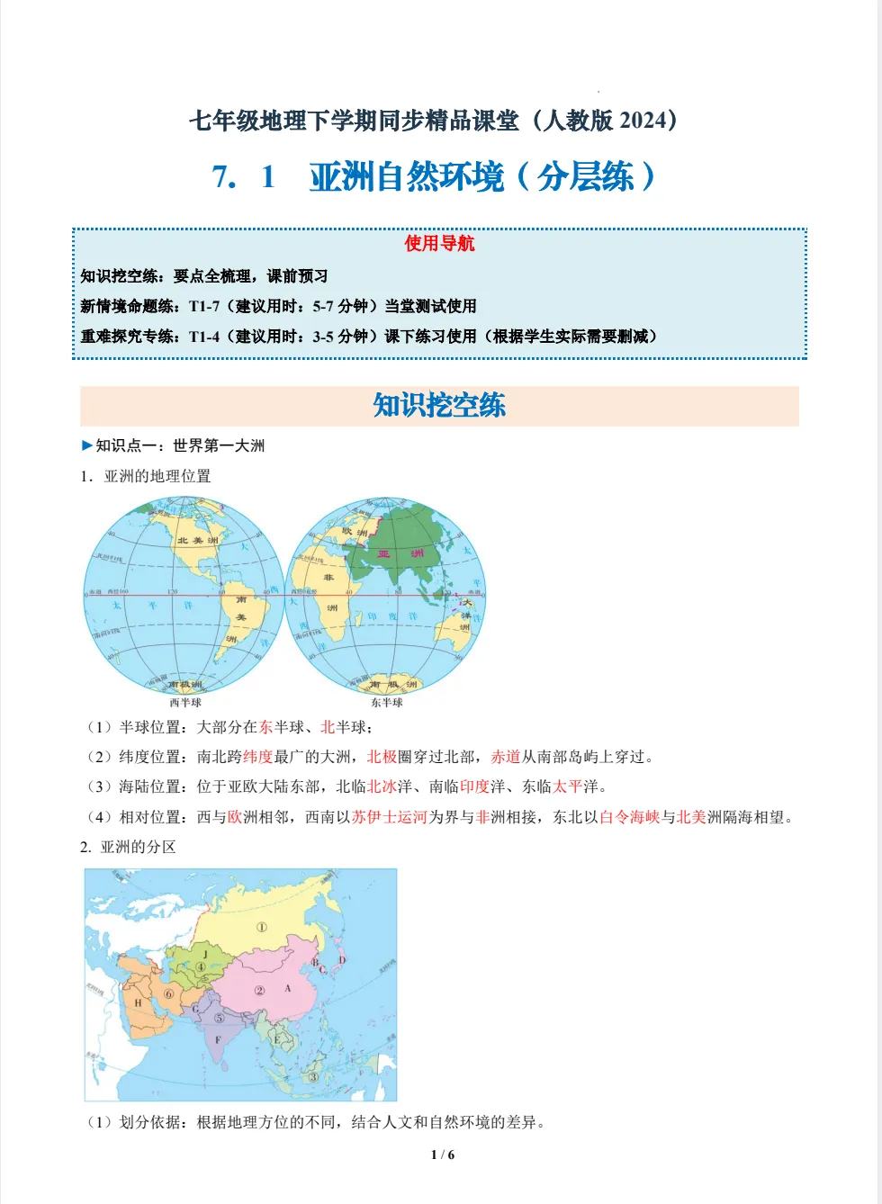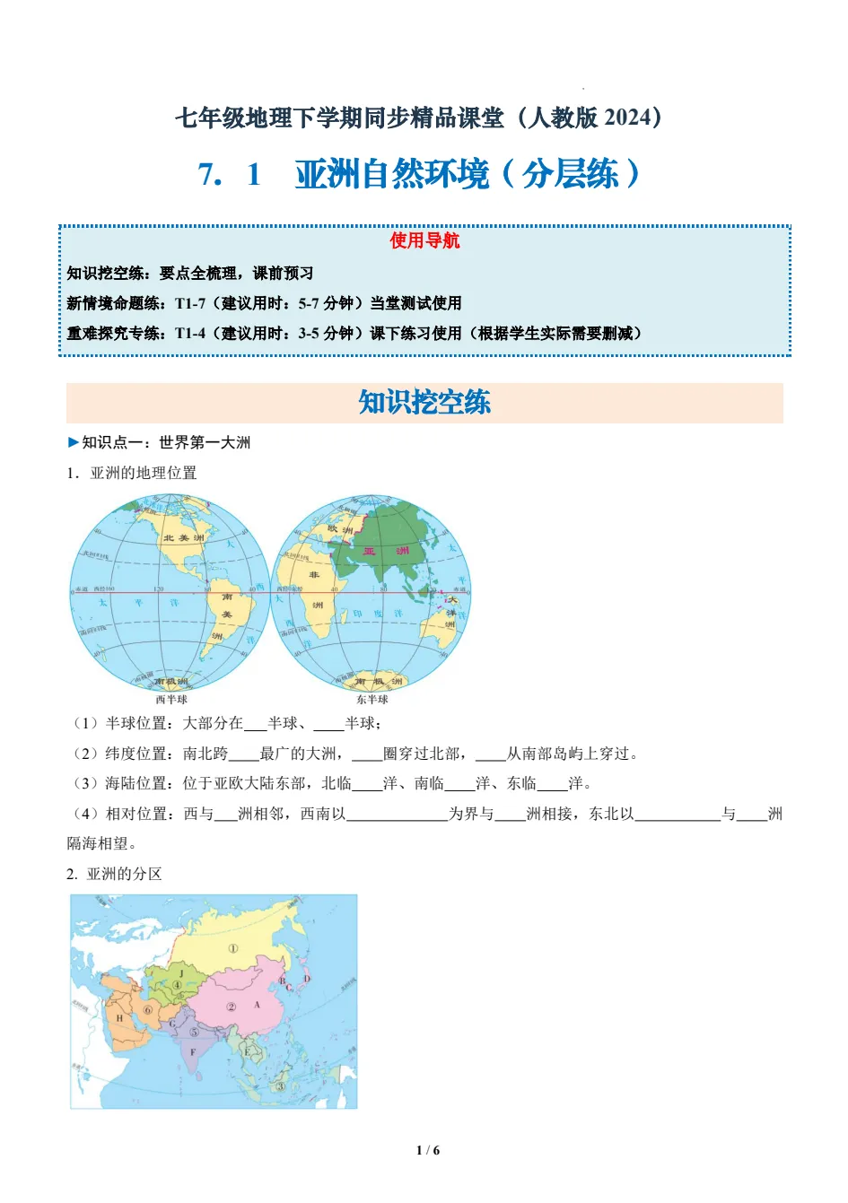2026版初中7年级下地理《必背知识点一课一练》小四门(知识挖空同步练习)含答案,(无水印)可免费下载打印