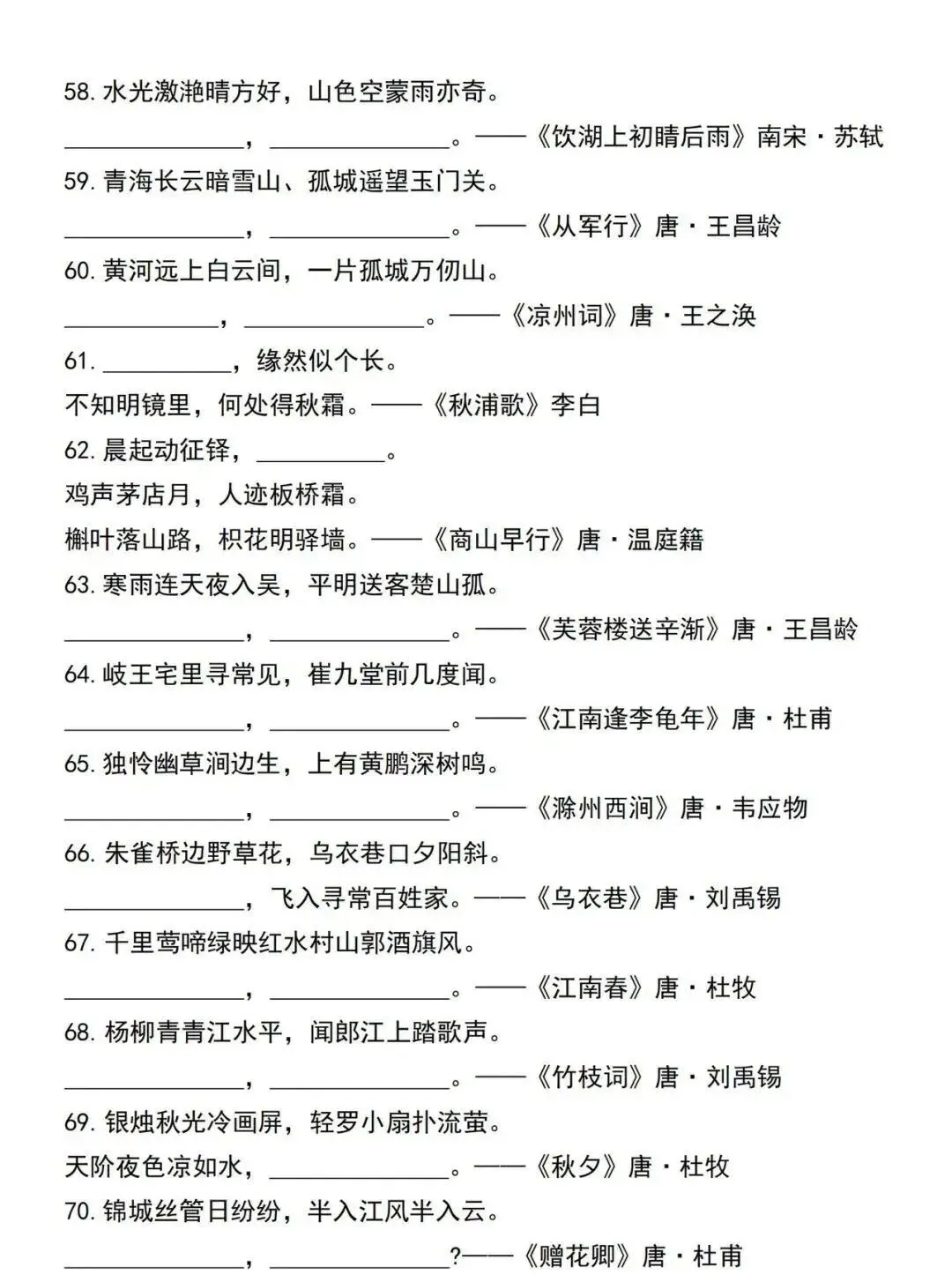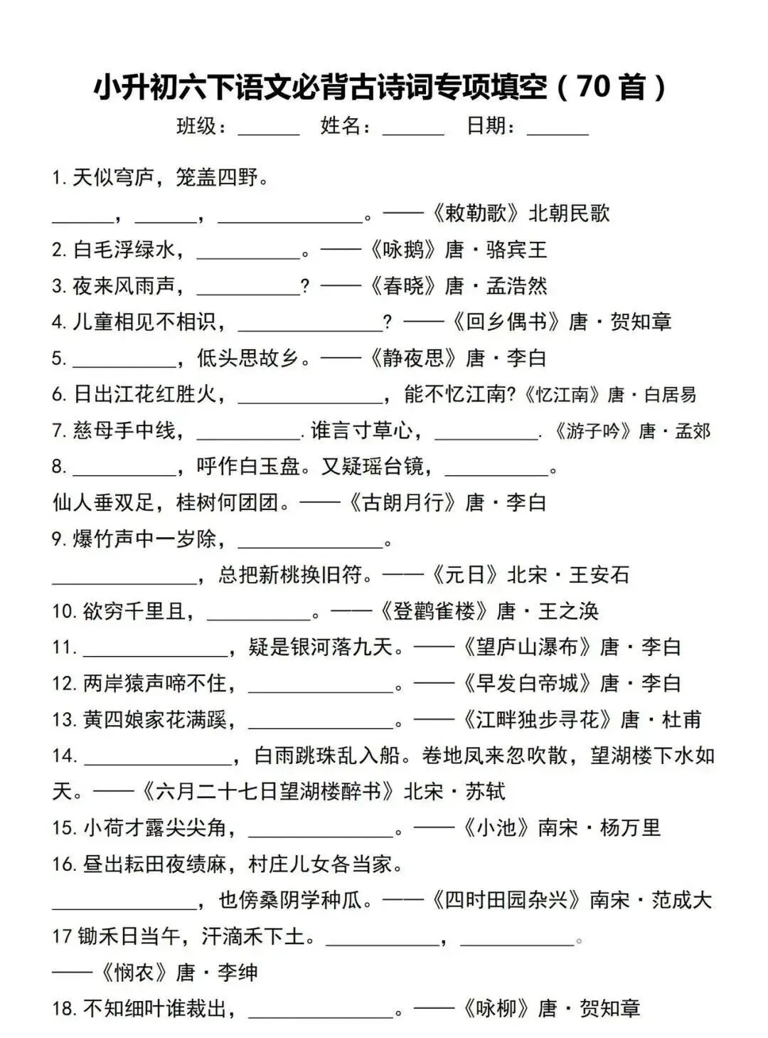 26春人教部编版语文六年级下册必背内容整理(古诗、 课文、日积月累)70首(可打印)