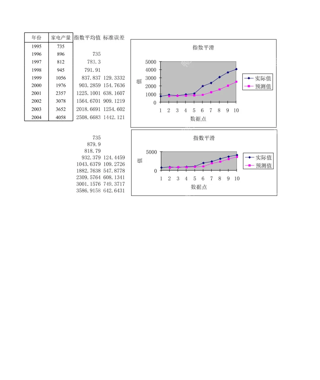 本文档是一份1995-2004年的家电产量统计分析表,为家电行业从业者、市场研究者提供权威的产量数据参考。文档包含10年间的年度家电产量数值,同步计算了对应年份的指数平均值与标准误差,清晰呈现家电产量的增长趋势与数据波动情况;同时还补充了另一组同周期的指数平均值与标准误差数据,便于进行多维度对比分析。无论你是家电行业的市场分析人员,还是相关领域的研究学者,这份数据表格都能为你提供精准的量化依据,助力你完成行业趋势研判与市场调研工作。