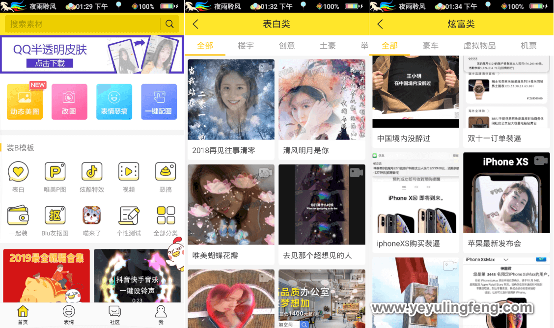 各种画中画,天天P图,浪漫相框,九宫格动图等等,众多P图素材等你来玩。