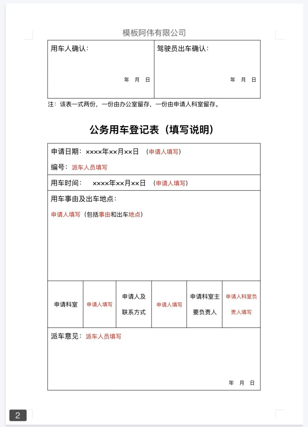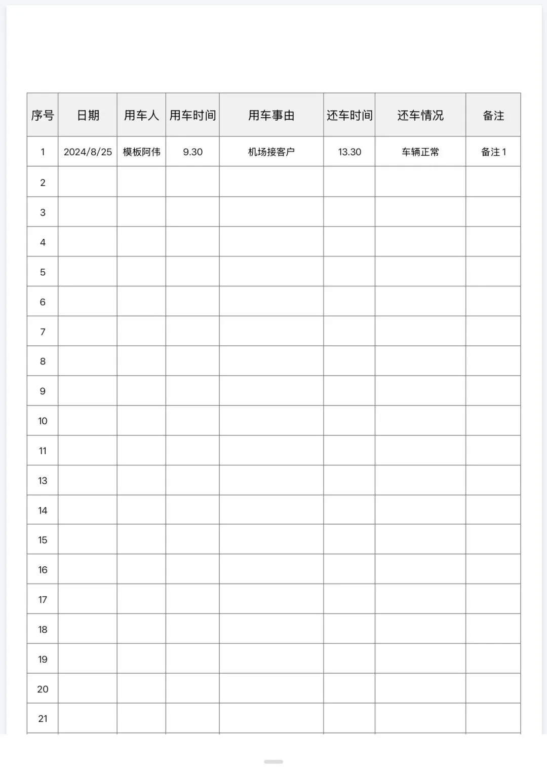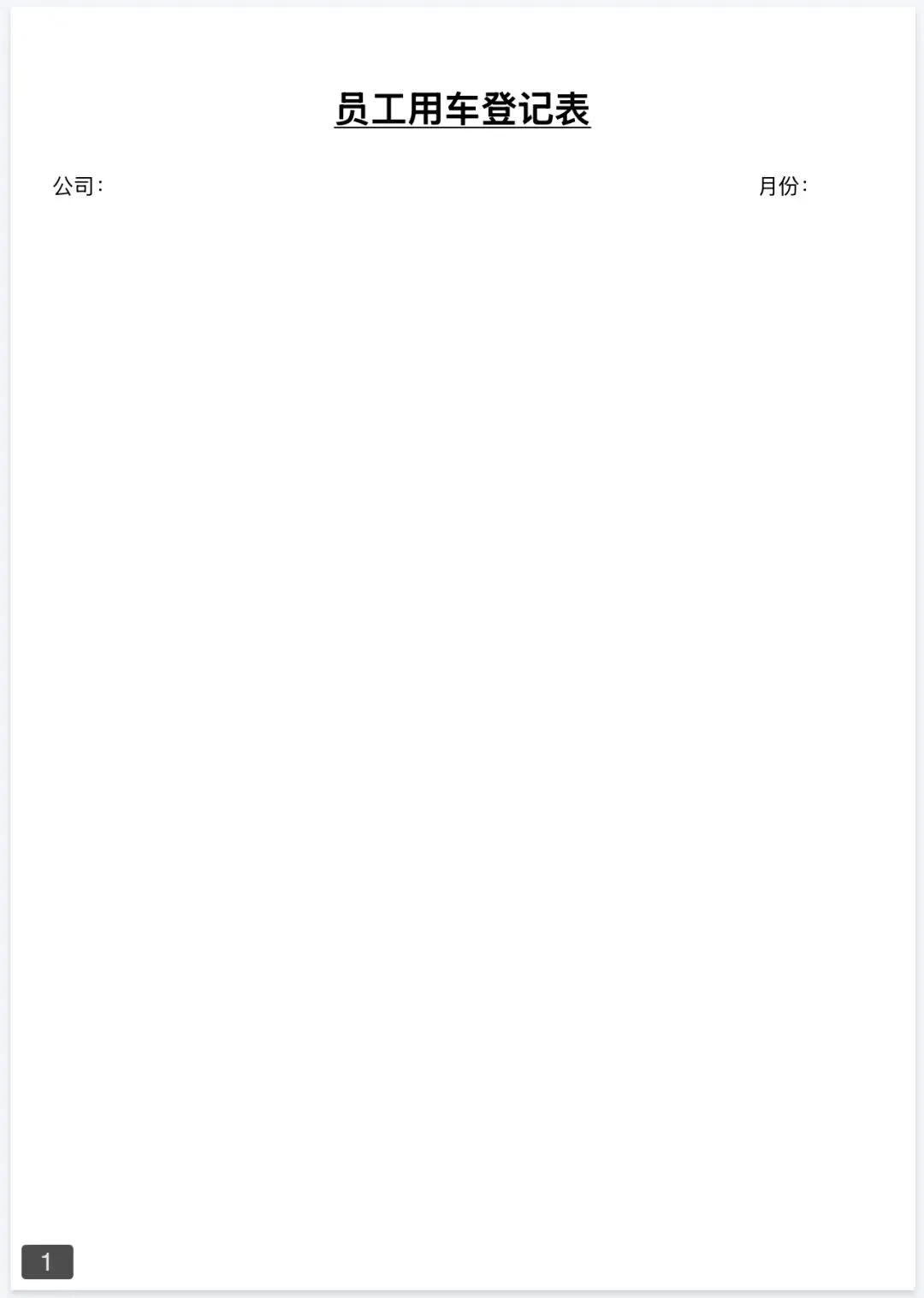 公司员工车辆用车登记表模板(word可编辑),电子版可下载