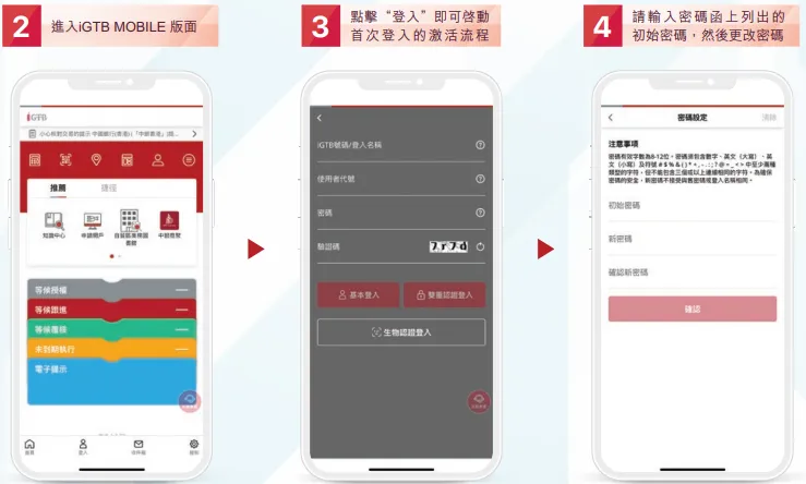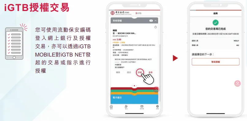 📲 APP下载:已安装iGTB Mobile(中银香港对公专属APP),iOS从App Store、安卓从应用市场或中银香港官网https://www.bochk.com/sc/home.html下载官方版本;