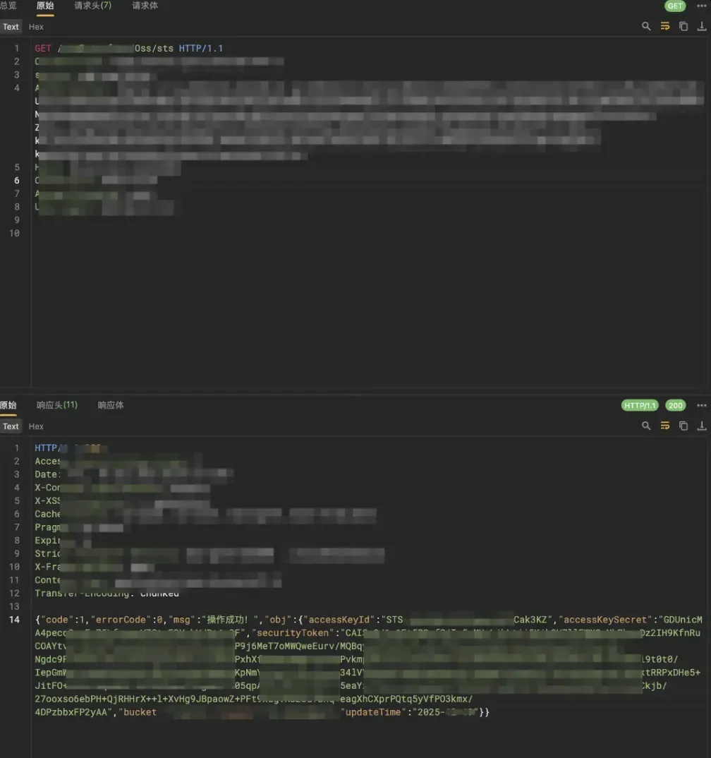 这个完全没有难度,上传功能点任意上传文件,这里发现某个oss临时凭据泄漏