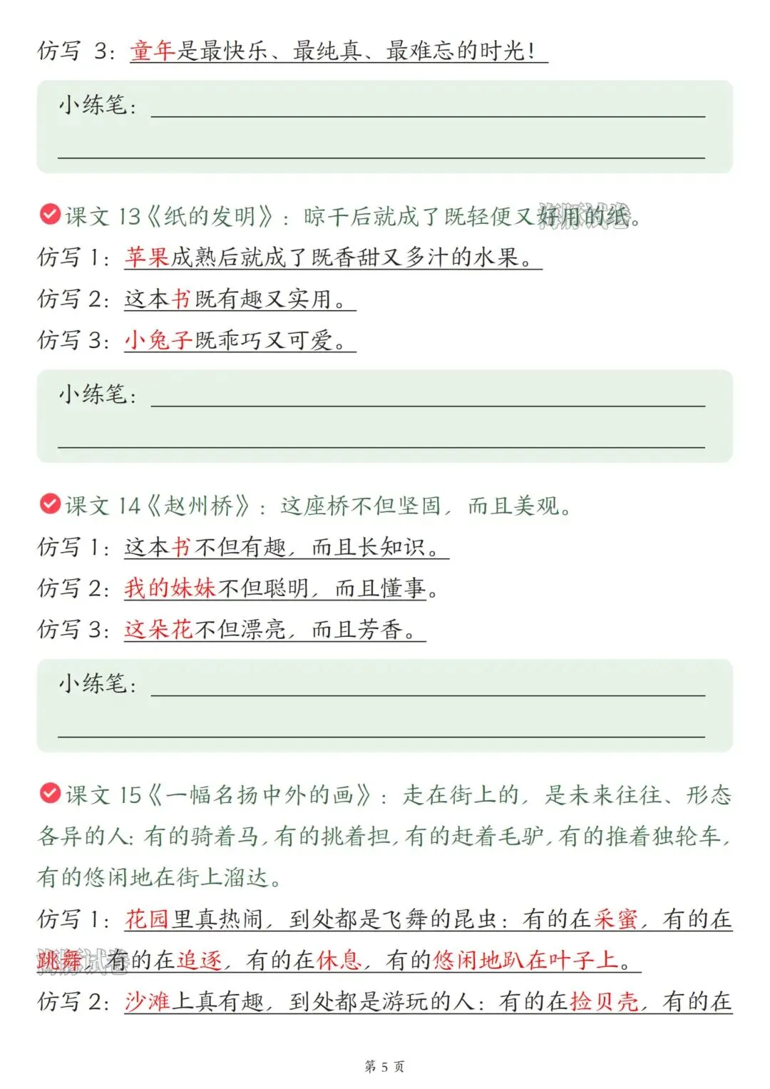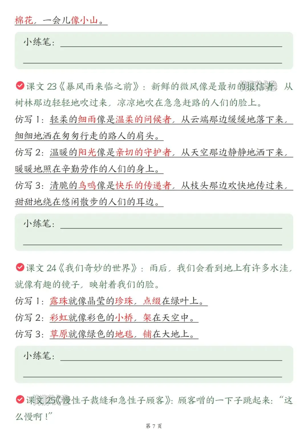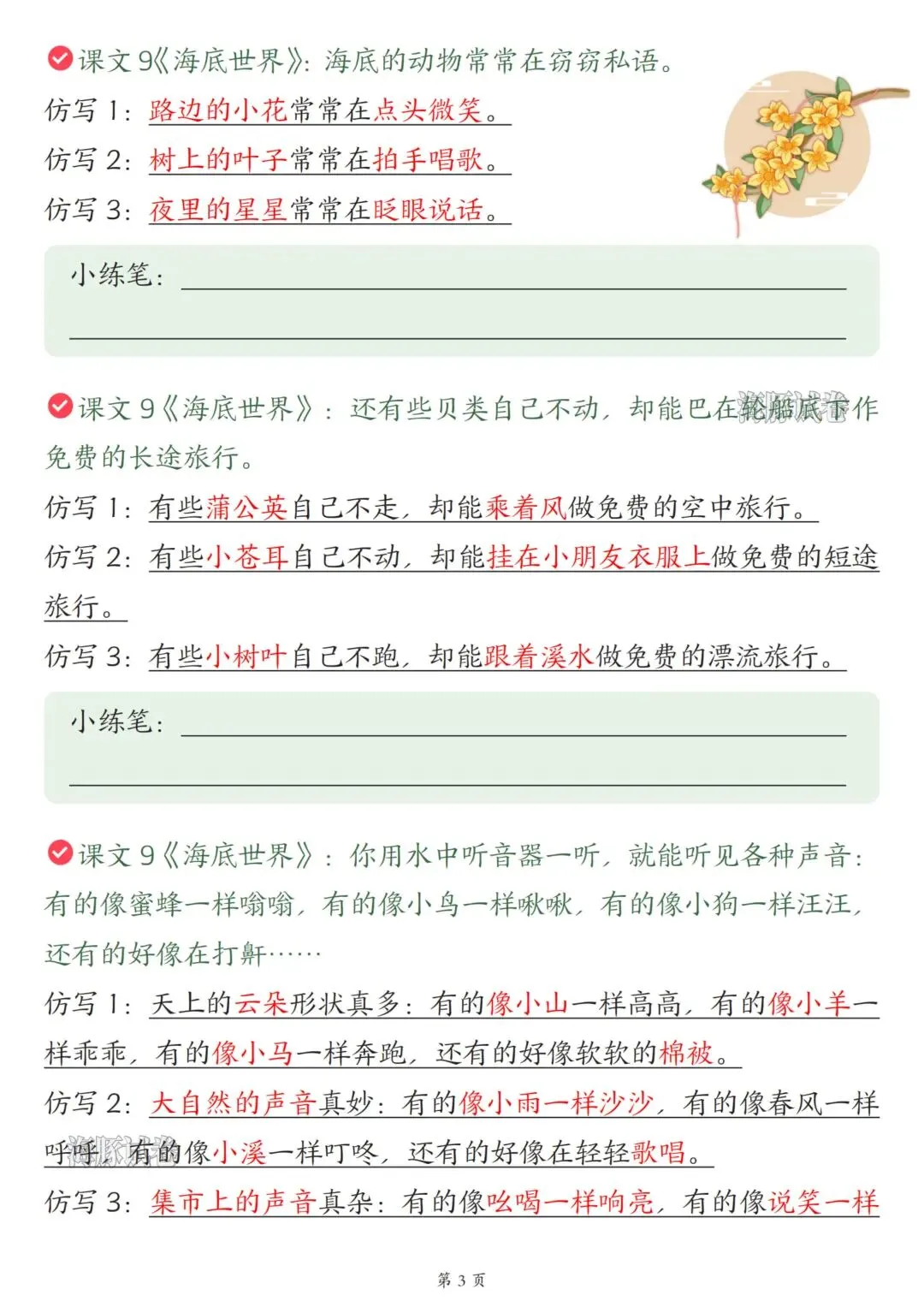 三年级下册语文重点句子仿写汇总,完整电子版可打印
