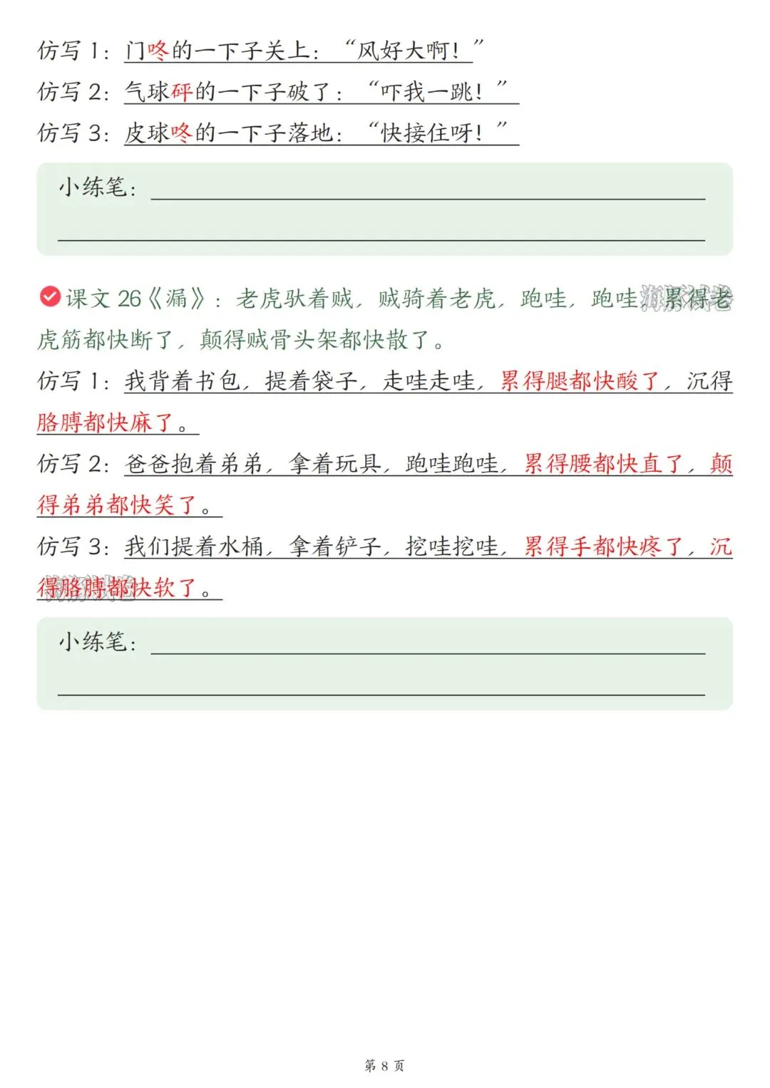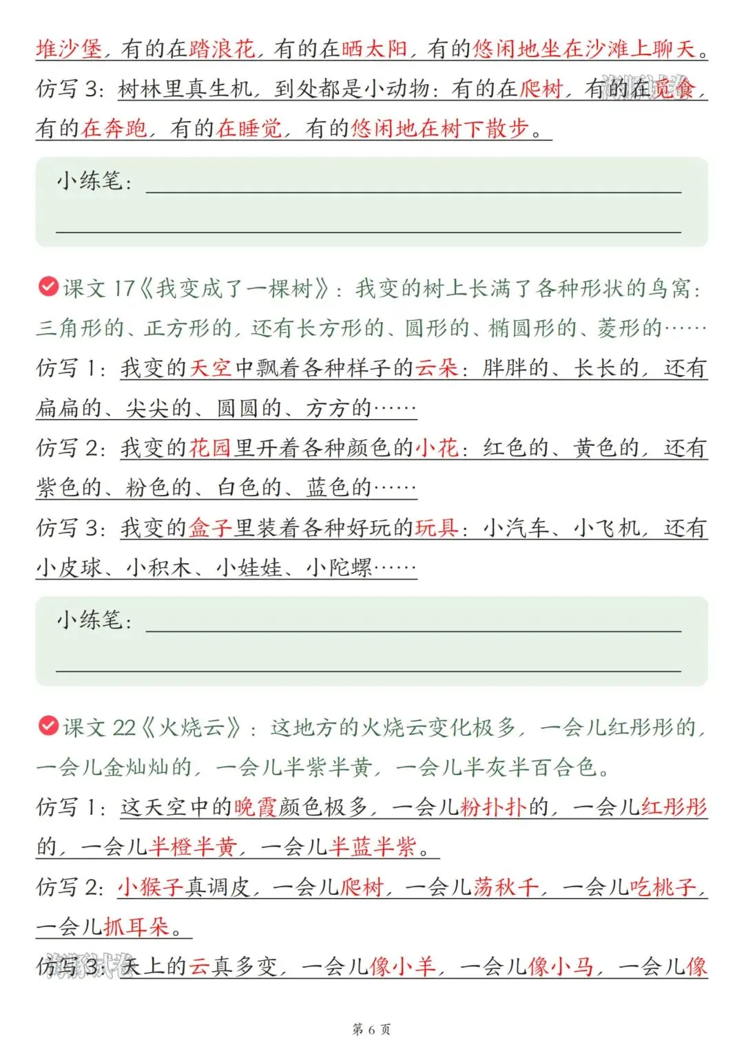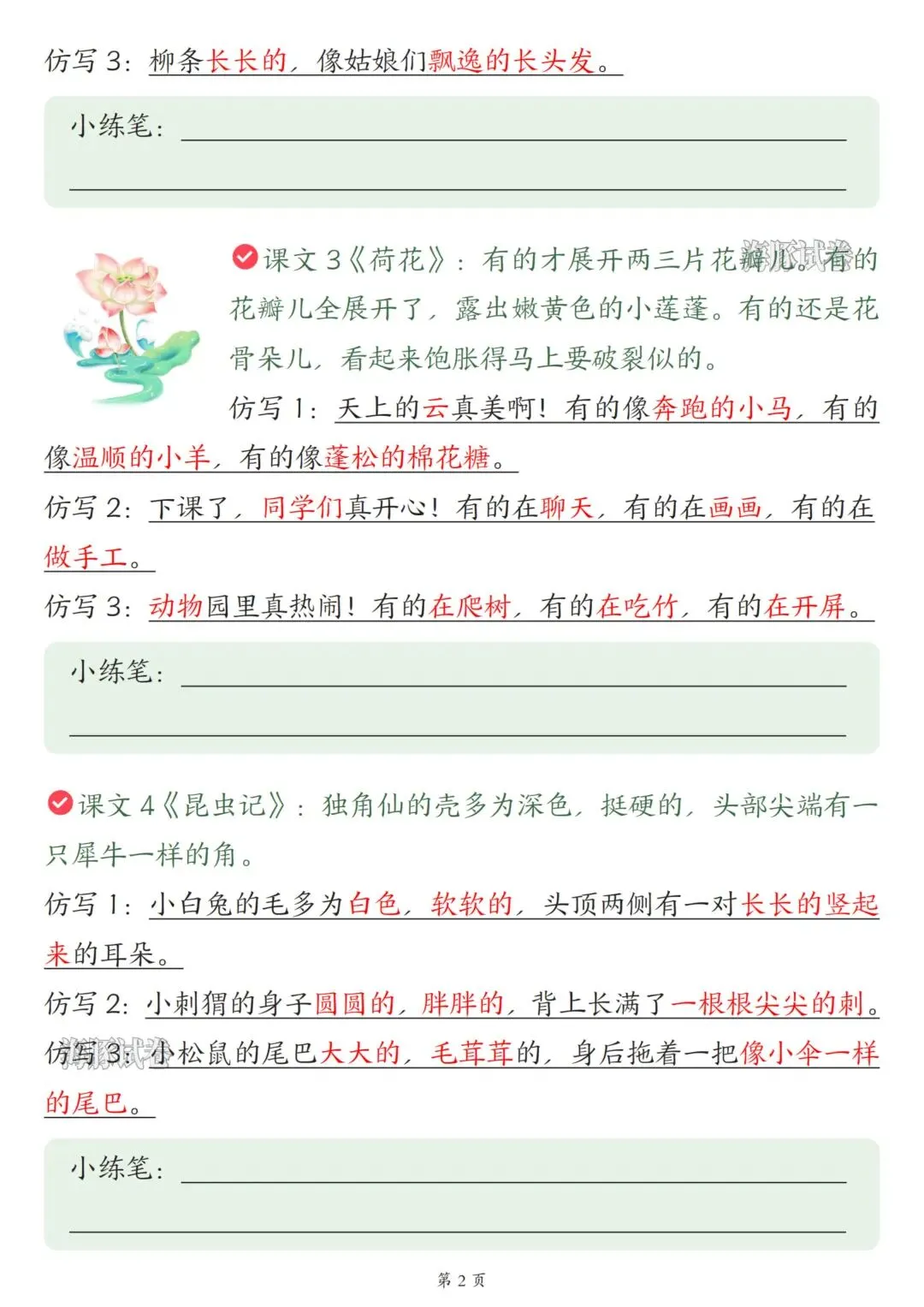 三年级下册语文重点句子仿写汇总,完整电子版可打印