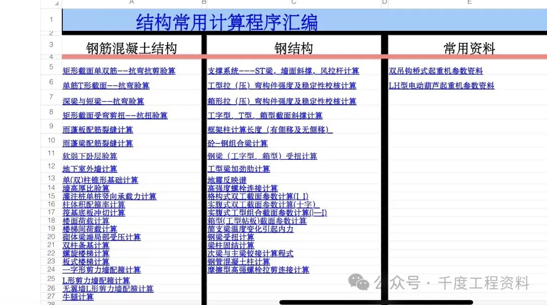 [一键下载]结构计算表格汇编Excel(45类)