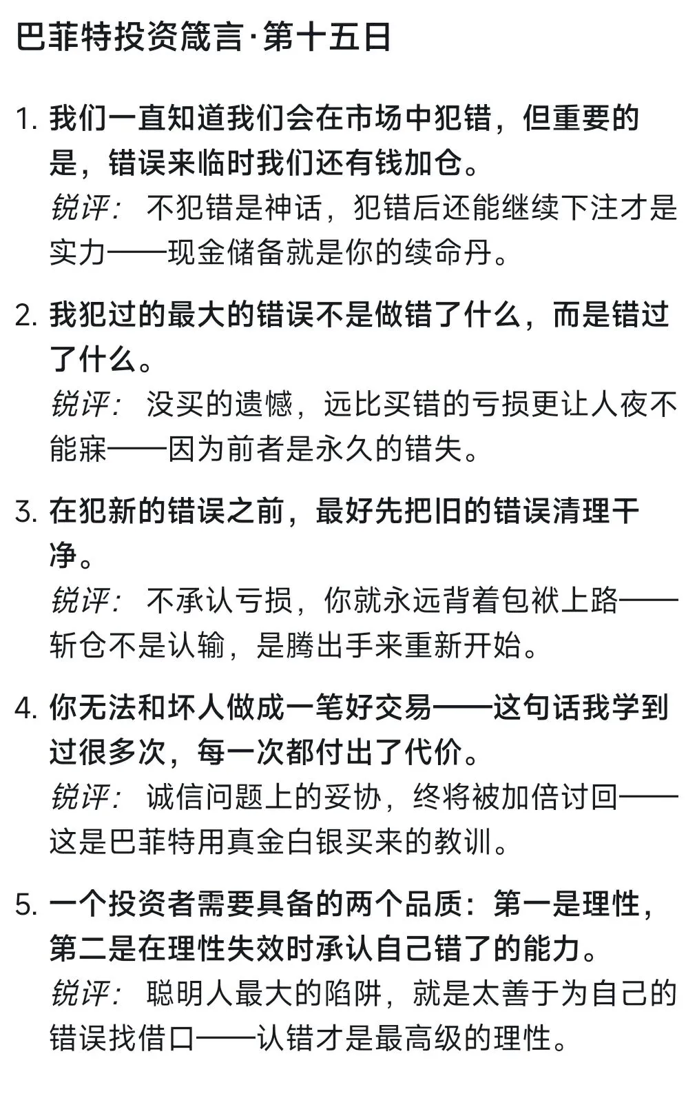 这五条箴言,聚焦于巴菲特投资哲学中一个常被美化、实则至关重要的维度: