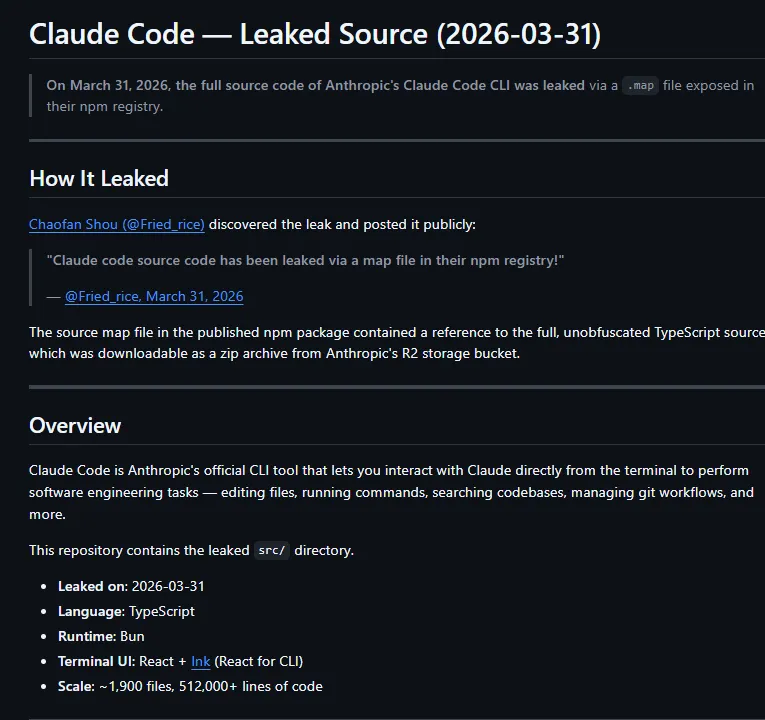 包含详细的构建指南(如何从泄露文件手动创建 package.json、tsconfig 等)。 - 学习价值
