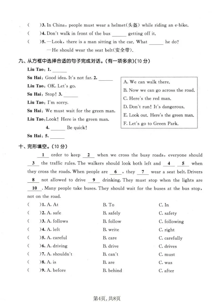 五、交际运用(情景选择、补全对话)