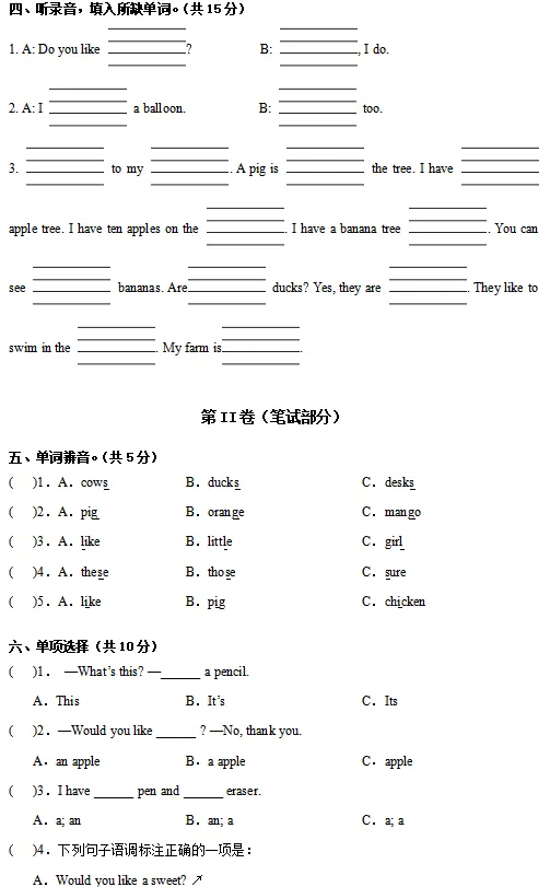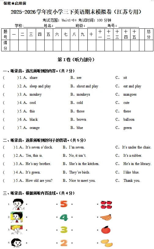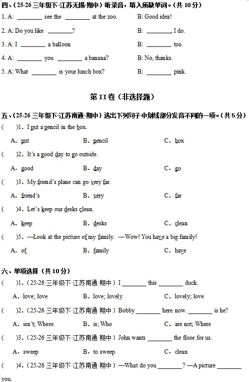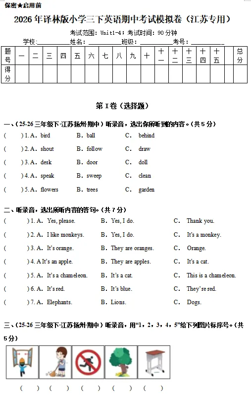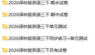 2026译林版 小学三年级英语同步练习+单元测试+ 期中试卷+ 期末试卷(全套下载)可打印