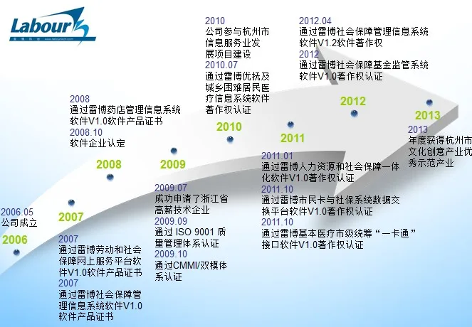 杭州雷博科技有限公司作为一家以高科技研发为核心的技术服务公司,致力于从事人力资源和社会保障行业、医疗保障行业、政务服务行业的应用软件的设计开发、项目实施、维护、咨询服务等,为国内的用户提供专业的信息化系统解决方案。我们有专业的研发团队,每年公司研发投入占公司收入总额比例为30%。公司作为浙江省省级软件企业和省级高新技术企业,获得ISO9001:2008质量体系标准认证和CMMI3级标准认证。科技成果转化累计28项,并获得21项自主知识产权,同时拥有多项市级政府立项项目和科技转化成果项目。