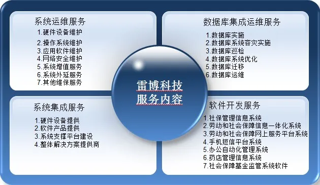 主营产品及介绍:雷博办公自动化管理软件;雷博城镇老居民生活保障管理信息系统软件;雷博多级网络信息管理平台软件;雷博就业管理信息系统软件;雷博社会保障管理信息系统软件;雷博劳动和社会保障信息系统一体化软件;雷博新型农村合作医疗保险管理信息系统软件;雷博药店管理信息系统软件;雷博医院管理信息系统软件(简易His系统);雷博城乡居民养老信息管理系统软件;雷博优抚及城乡困难居民医疗信息系统软件;雷博人力资源和社会保障一体化信息系统;医保OCR智能报销系统;医保联网结算平台;医保大数据分析平台;医保反欺诈平台;矛调中心业务系统;社会保障卡服务平台等。