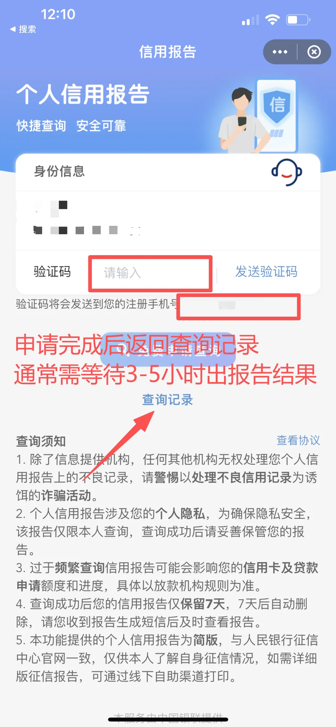❸核实个人身份,按流程操作,操作完成返回上一步“查询记录”,通常需等待3-5小时出报告结果