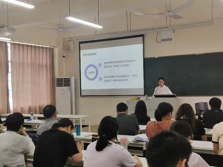 为进一步推动AI赋能学科教学的智能化、高效化、多元化和数据化,提升教师队伍的AI素养,打造高质高效课堂,外国语学院英语系联合日法语系于近日组织开展聚焦AI时代英语教学与创新的教研活动,探讨AI技术在备课、课程设计中的应用场景与创新模式,分享智能平台在教学中的实践案例。